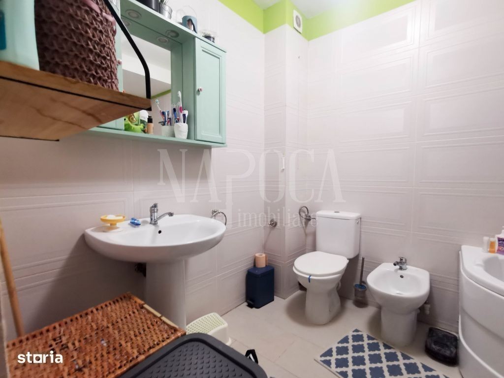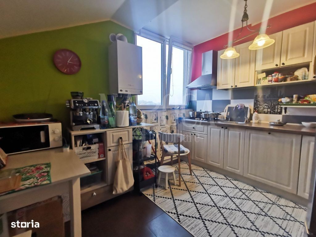 Apartament cu 3 camere si 4 locuri de parcare, in cartierul iris - Cluj-Napoca! Avem placerea de a va oferi spre vanzare un apartament in cartierul Iris, situat intr-o zona apropiata supermarket-ului Auchan. Apartamentul este situat la mansarda inalta a unui imobil construit in anul 2009 - dispus pe 7 nivele. Acesta este dotat cu lift si in apropierea lui se regasesc magazine alimentare, statii de autobuz si tramvai, dar si alte puncte de interes. Avand o suprafata utila de 79 mp, apartamentul dispune de 3 camere, cu compartimentare semidecomandata in felul urmator: - 1 living; - 2 dormitoare, cel matrimonial avand si un spatiu de dressing; - 1 bucatarie; - 1 baie; - 1 holuri; - 2 balcoane. Apartamentul se preda mobilat si utilat, conform pozelor cu urmatoarele tipuri de finisaje: - pardoseala cu parchet laminat; - pereti vopsiti cu vopsea lavabila si design de piatra; - gresie si faianta moderna atat in bucatarie cat si in baie; - ferestre termoizolante din PVC; - usi interioare din lemn; - usa de la intrare metalica. Confortul termic in apartament este asigurat de centrala termica cu incalzire in pardoseala! Apartamentul se poate achizitiona atat din surse proprii, cat si prin credit bancar, deoarece CF-ul este liber de sarcini. In pretul afisat este inclus si un loc de parcare. De asemenea, se mai pot achizitiona tot de la proprietar inca 3 locuri de parcare la pretul de 13.000 de euro. Pentru mai multe detalii sau pentru a programa o vizionare va stam cu drag la dispozitie, Echipa Napoca Imobiliare!