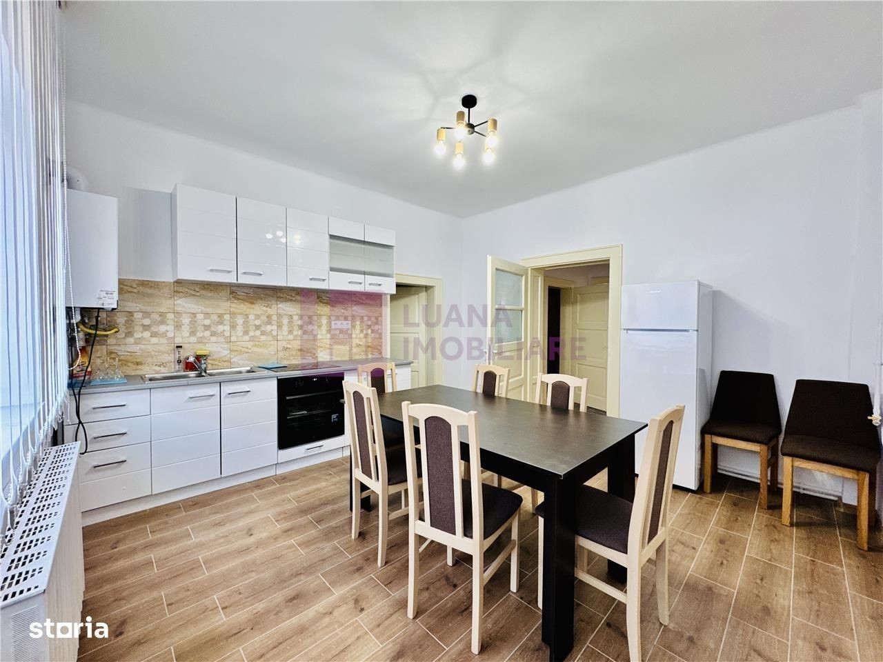Casa de inchiriat in Sibiu - zona centrala, PREMIUM, a orasului - renovata complet, finisata la cheie - - garaj, filigorie, pivnita, pod - Luana Imobiliare Sibiu va prezinta la inchiriat o casa cu 3 camere, suprafata utila 100 mp si curte libera de 600 mp. Casa de inchiriat in Sibiu are regimul de inaltime D+P si este compartimentata astfel: - demisol: pivnite si un grup sanitar de serviciu; - parter: hol foarte spatios, bucatarie cu acces in terasa si in curte, camara, living, doua dormitoare si baie. Podul este amenajat ca spatiu de depozitare, fiind termoizolat si podit. Curtea beneficiaza de acces auto si include un garaj inchis pentru un plus de siguranta si confort. Zona exterioara este amenajata cu pavaj, terasa, filigorie perfecta pentru relaxare si o gradina ideala pentru momente petrecute in aer liber. Mod de predare: Casa este renovata integral si se preda finisata la cheie, cu posibilitatea de a fi mobilata si utilata complet. Bucataria si baia sunt amenajate complet. Incalzirea se realizeaza cu centrala termica proprie si calorifere. Aceasta casa de inchiriat in Sibiu este o adevarata oaza de relaxare, inconjurata de zone verzi, situata in cea mai apreciata zona din oras. Aveti posibilitatea de a contribui la amenajarea si decorarea ei, astfel incat sa va simtiti rapid acasa si sa va bucurati de confortul dorit. Loc de parcare: Parcarile sunt asigurate in curtea imobilului, unde intra cel putin 4 masini, plus in garajul interior. Localizare: Casa de inchiriat in Sibiu este localizata in zona centrala a orasului Sibiu, pe o strada retrasa de aglomeratia urbana, insa chiar la cativa metri distanta de zona Calea Dumbravii - CEC - ANAF. In imediata proximitate se gasesc majoritatea punctelor de interes: centru universitar, magazine, scoli gradinite, mijloace de transport in comun. In plus, Parcul Subarini si Centrul Istoric sunt la o distanta de 500 m, ce se poate parcurge facil in plimbare. Se solicita garantie si contract de inchiriere pe minim un an. Comisionul de intermediere este 50% + TVA din valoarea unei chirii. ID intern: 1007.