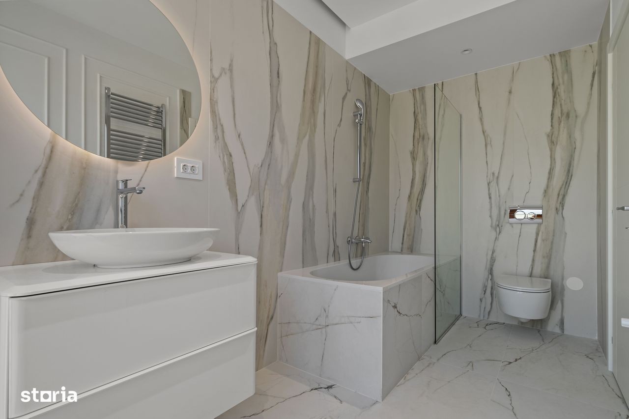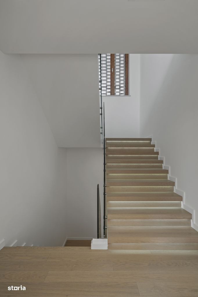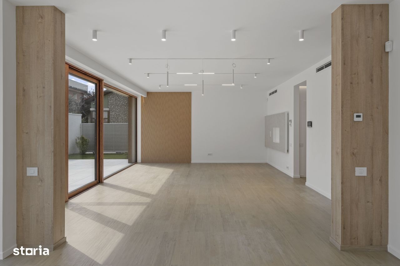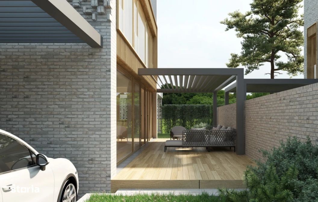 Va supunem atentiei o vila ultramoderna situata intr-un proiect exclusivist din zona Iancu Nicolae, pe o strada linistita in apropierea padurii. Vila se remarca prin luminozitate, beneficiind de suprafete vitrate foarte mari, ce permit luminii sa patrunda in fiecare colt al locuintelor. Designul interior este semnat de Delta Studio, care aduce o nota de rafinament si eleganta in fiecare spatiu, oferind viitorilor proprietari un ambient contemporan si reconfortant. Acest proiect boutique se defineste prin exclusivitatea sa, oferind 5 vile premium, garantand astfel intimitatea si atentia sporita la detalii, iar aceasta proprietate detine terenul cel mai generos, Localizarea proiectului asigura acces rapid catre scoli si multiple puncte de interes. Detalii tehnice: Sistem mixt Incalzire/Racire : Centrala termica pe gaz Buderus si Pompa de caldura aer/aer Bosch Exista montate panouri fotovoltaice de 7kw precum si baterie de stocare Huawei de 10kw. Practic este o casa independenta energetic, care are costuri de intretinere minime. De asemenea, exista panouri solare care incalzesc apa menajera. Sistem de incalzire in pardoseala Uponor VRF-uri in tavan pentru aer cald/rece Reglaje de temperatura individuale Terase : Pardoseli flotante din Ceramica/WPC Tamplarie Reynaers MasterLine 8 High Insulation Tamplaria este prevazuta cu hidroizolatie la exterior, bariera contra vaporilor la interior, rupere termica si glaf exterior vopsit mat in camp electrostatic Geam tripan prevazut cu distantier cald si : sticla laminata cu PVB la interior si Low-E Termoizolatia este realizata cu vata minerala bazaltica tip isover fassade de 20cm la placarea cu bratca, 15cm la fatada ventilata cu ceramica si 10cm la zidurile din caramida plina presata. Finisajul fatadelor este mixt: fatada ventilata cu placare ceramica (produsa in Germania) Smart home ready: incalzire, lumini, draperii, supraveghere video