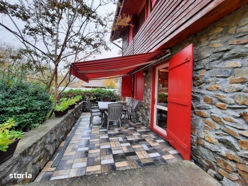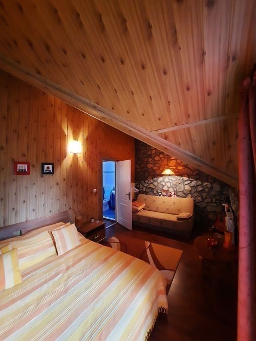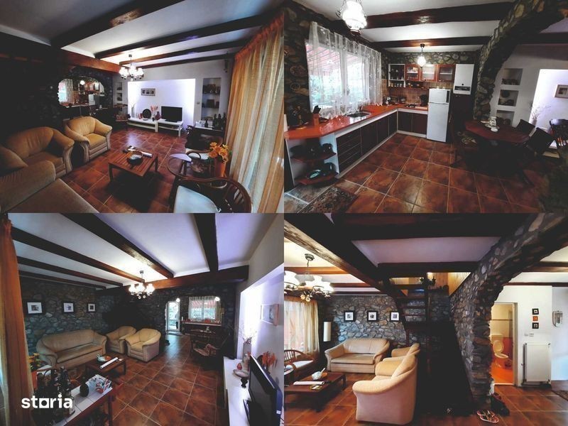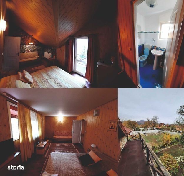 DE VANZARE CASA DE VACANTA RUNCU (GORJ) - CHEILE SOHODOLULUI Constructie tip duplex (2 locuinte identice, alipite - SE VINDE DOAR UNA) executata din piatra-parter si lemn-mansarda in 2003, situata pe str. Cheile Sohodolului in comuna Runcu, judetul Gorj. Amplasata la drumul principal ce duce spre Chei, are in apropiere albia raului Sohodol in partea din spate a incintei. Terenul aferent locuintei ce se vinde este in suprafata de 390 mp. Casa are o suprafata construita de 50,0 mp si desfasurata de 100,0 mp, plus 2 terase generoase spre strada si spre curte. Locuinta beneficiaza de racord 380V la reteaua electrica, la cea de apa comunala si sursa proprie (fantana), canalizare fosa septica, retea DIGI de cablu si internet, sistem de supraveghere cu camere conectate la internet. Incalzirea se face cu centrala termica electrica si calorifere. Spatii interioare : Parter : camera de zi + bucatarie + loc de luat masa, si baie Mansarda : 2 dormitoare si un grup sanitar. Se vinde mobilata si echipata integral, ca in imagini. PRET : 70.000 euro ( vanzator persoana fizica ).