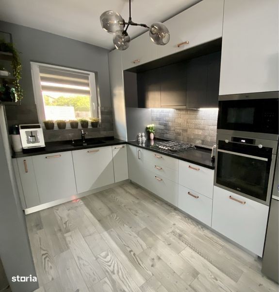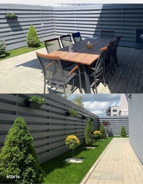 Casa de vanzare zona Matei Millo (Pipera, Voluntari) langa padure, in complex rezidential, mobilata, utilata premium, pret negociabil. P+1+mansarda mica (birou) 115 mp + curte 60mp 3 locuri de parcare Compartimentare: Parter - Living, bucatarie open space, hol acces, grup sanitar Etaj - hol, baie cu cada si dus, 2 dormitoare (unul din ele fiind mansardat, spatiul poate fi utilizat ca birou si depozitare) Alte detalii: - acoperis- tigla ceramica Creaton - centrala proprie in condensatie Saunier Duval - termositem polisteren de 15 cm EPS 70 - incalzire in pardoseala Valrom - tamplarie - geam tripan cu 5 camere Salamander - scara interioara turnata din beton imbracata in lemn masiv stejar - usa intrare - metalica Golden Doors - parchet Egger - ceramica Spania Gayafores - obiectele sanitare Cersanit - baterii Kludi