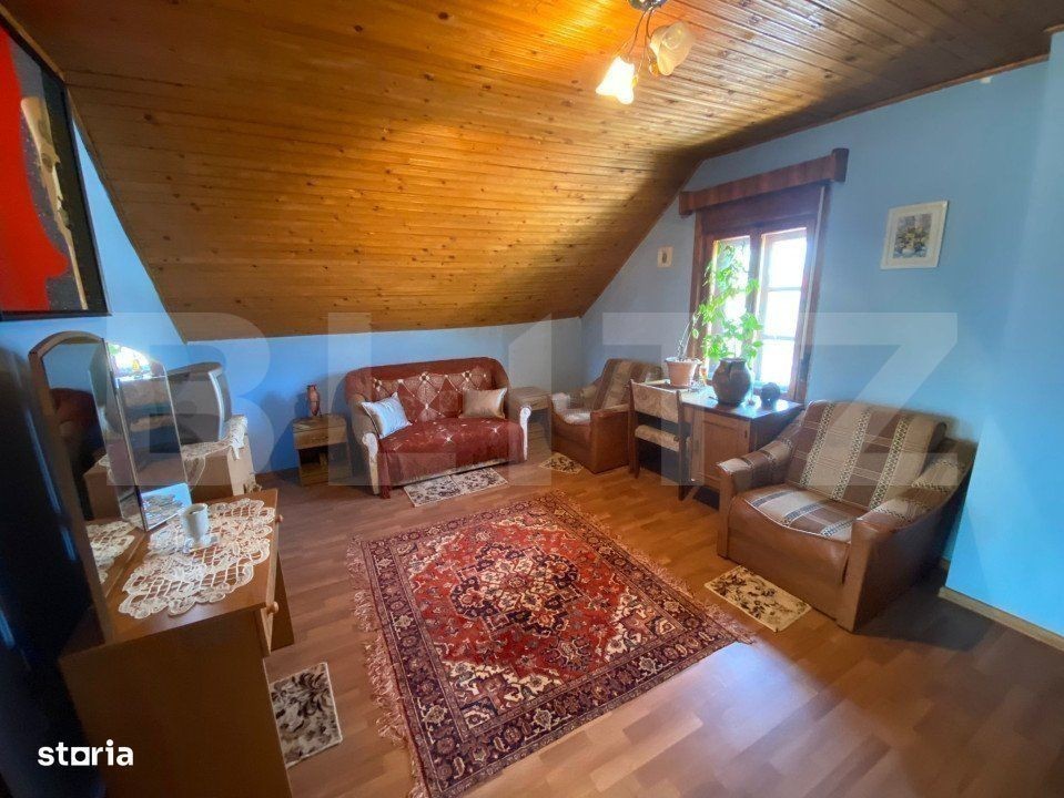 Blitz propune pentru vanzare casa individuală, care datează de la 1985 si are o suprafată totală de 240 mp utili. Subsolul casei este compus din doua inceperi tehnice plus garaj, la parter se regăsesc două camere luminoase, bucătăria spatioasă, o baie incăpătoare si două incăperi utile pentru depozitare. Proprietatea dispune de etaj tip mansardă, unde regasim 3 camere, din care una cu balcon, o baie si o incăpere pentru depozitare. Curtea imobilului este plăcut asezată in pantă si terasata. Merita toată atentia dumnevoastră!
