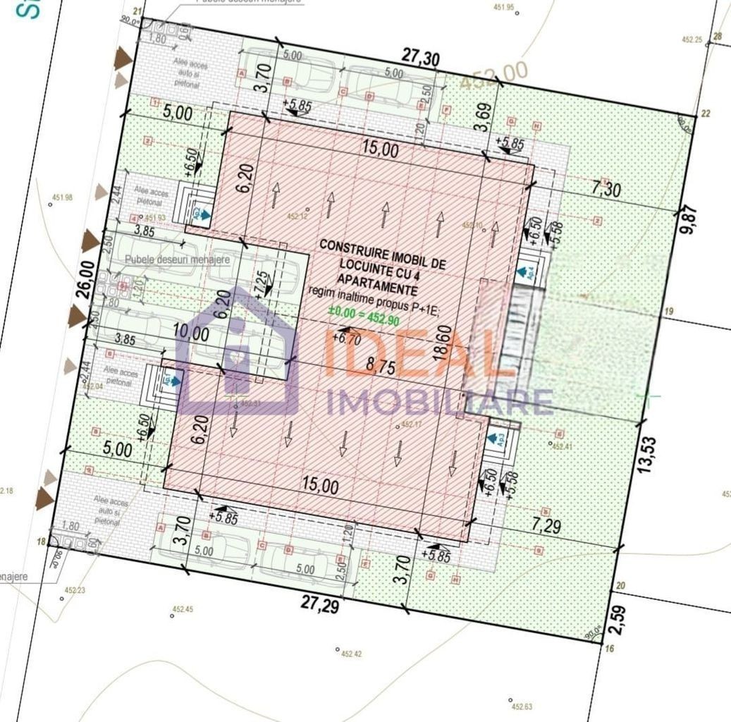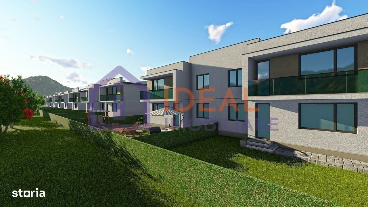 Casa tip quadruplex cu 3 camere, in Calea Cisnadiei, zona Lidl, cu un regim de inaltime P+E, suprafata terenului este de 200 mp, iar suprafata utila de 82 mp si sunt compartimentate astfel: -Parter: hol, living spatios de 20 de mp utili, bucatarie decomandata de 14 mp, baie de servici, spatiu de depozitare/debara; -Etaj: dormitor matrimonial de 16 mp cu iesire pe balcon, dormitor de 12 mp, baie de 6 mp, hol de acces si un spatiu de depozitare. -Casele Se predau la stadiul 'ALB' la interior astfel: peretii complet finisati inclusiv lavabila alba, sape elicopterizate, instalatie de incalzire prin pardoseala la etaj si parter,centrala termica in condensare, instalatie electrica, instalatie sanitara pe pozitie, toate utilitatiile cu contoare montate. -La exterior acestea se predau 'LA CHEIE' astfel: alei pietonale si loc de parcare in curte amenajate cu dale de beton,zona verde amenajata,gard de imprejmuire, poarta acces auto si portita de intrare. Pret: 145.000 Euro +TVA Telefon: