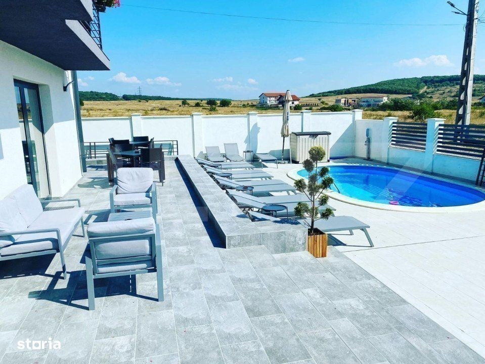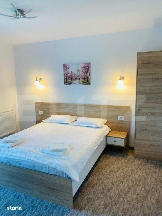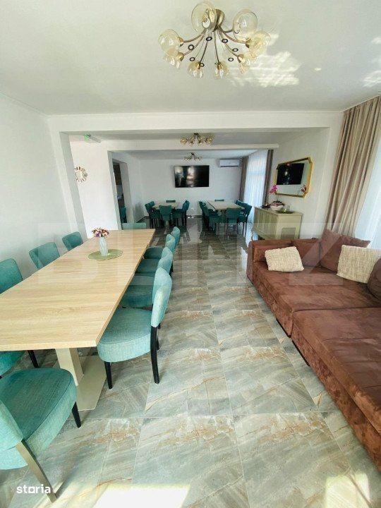 Bllitz imobilare va ofera spre vanzare o pensiune in Baile Felix.Pensiunea este noua construita in anul 2023 si este mobilat utilat lux.Pensiunea este construita pe un teren de 850 mp.Curtea este amenajata cu piscina,loc de joaca pentru copii si zona de grill.Pensiunea are 19 dormitoare fiecare cu baie proprie.La parter e receptia cu sala de mese si bucataria. Pensiunea este ideala pentru investitie fiindca gradul de ocupare era 100% fiind construita langa Strandul Apollo.Daca va doriti o afacere la cheie atunci doar un telefon ne desparte pentru a merge la vizionare.Va asteptam!