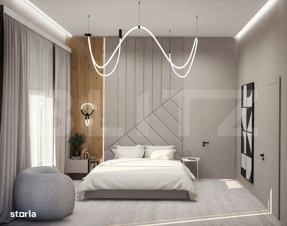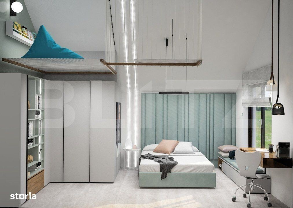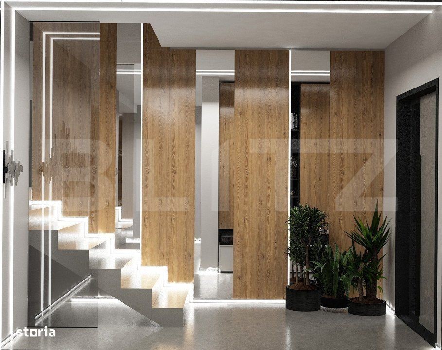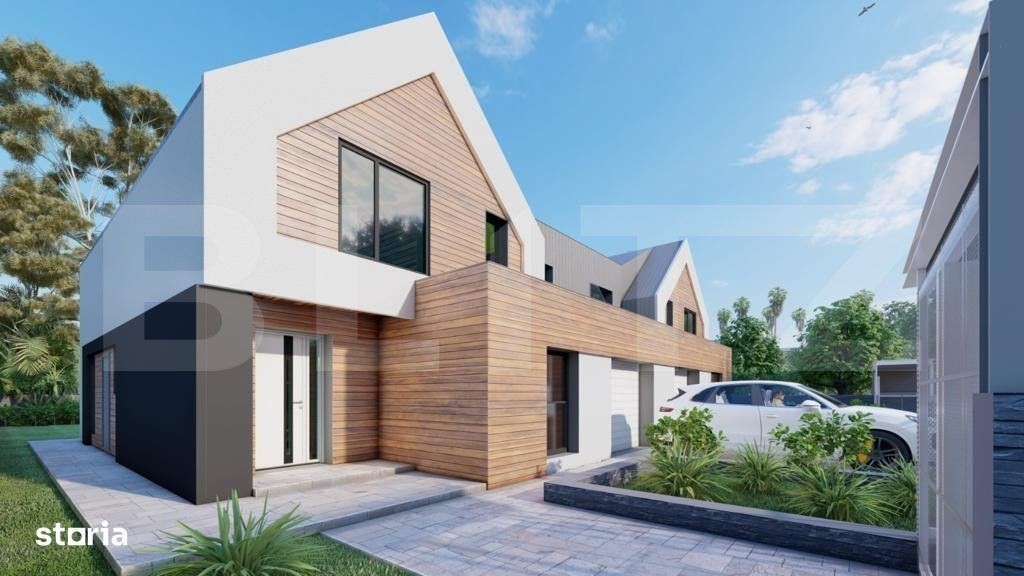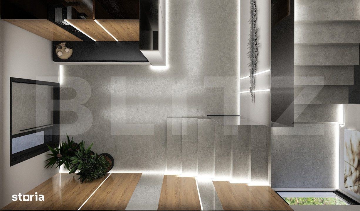 Blitz va prezinta o casa in constructie Stupini, SINGUR IN CURTE, proiect frumos, impecabila, desfasurata pe parter si etaj 1, avand 180 mp utili plus terasa 70 mp, teren liber in jurul de 250 mp. Casa face parte dintr un proiect rezidential exclusivist de 4 case, individuale, cu intrare privata, asigurata cu bariera, si este alcatuita pe plan parter din: -living openspace cu loc de luat masa si bucatarie in suprafata de peste 45 mp, un hol, un birou, o terasa, un spatiu deschis, ff generos si pe plan etaj: -3 dormitore,camera tehnica, 2 bai si 2 terase mari. Dormitorul matrimonial cu baie proprie si iesire pe terasa, dormitorul copilului cu ancore pt joaca deasupra in tavanul inalt cu loc secret, ascunzis, si dormitorul celalalt cu inca o iesire pe alta terasa, avand totodata 2 bai care le deserveste, cu vana free standing, si usi cu inaltimea de 2, 5 m, aceasta casa va va uimi! Proiectul se remarca prin designul modern si confortul oferit, fiind ideal pentru familii care cauta un camin linistit in natura! Constructia, proprietate a unui dezvoltator de mare renume din Brasov va uimi, prin calitate, rezistenta si finisaje premium. Toata zidaria atat interioara cat si exterioara este realizata cu caramida groasa T30, pe structura de beton armat, iar pentru pod s au folosit capriori 15*25 pt a fortifica cat mai mult constructia, si pentru a o face cat mai solida si durabila in timp. Dotari: Fatada ventilata cu HPL si Bond Aluminiu presat, imitatie lemn Usa intrare din fier masiv din Italia 2,50h*1,25 latime Alias Usi interioare 2,5 m inaltime Filomuro Sistem de iluminat inteligent cu benzi led incorporate pe tavan si in pereti Parchet triplustratificat din lemn natural in toata casa, inclusiv pe trepte Panouri solare cu invertor trifazat 5,2 kw pt producerea energiei electrice Acoperis din tabla izolat Izolatie termica si fonica din vata minerala bazaltica de 10 cm excelenta Pod de depozitare cu inaltime de 1,5 m la coama, izolat ca vata minerala de 25 cm. Finisaje premium cu o atentie deosebita la detalii Instalatii :fiecare casa este dotata cu video interfon Bai complet utilate cu obiecte sanitare moderne si vas wc suspendat conform randari, vana free standing, wc cu senzori de igienizare Sistem de incalzire prin pardoseala Centrala proprie Viesman incorporata, fara boiler. Sistem de ventilare cu recuperare de caldura, practic nu este necesara deschiderea ferestrelor, ideal pentru persoanele cu alergii Toata infrastructura pregatita pt montare pompa de caldura pt producerea agentului termic si al apei calde Termopan: Feronerie de inalta calitate din aluminiu cu 3 foi de sticla si 7 camere Geam living din 2 bucati cu usa culisanta, glafuri marmura Terasa cu pardoseala din lemn natural, si panze in valuri pentru semiumbrire atat la parter cat si la terasa de la etaj. Predare: Casa se preda complet finisata si utilata la cheie, gata pentru a fi locuita, dupa o selectie atenta a dezvoltatorului, si amenajare cu gresie, faianta si obiecte sanitare precum in pozele din randare. In pretul afisat este inclus tva, loc parcare, si finisaje la cheie. Accesul se face pe o strada privata cu sistem de bariera automata! Bucurati va de confortul si eleganta unui camin modern in cadrul acestui complex rezidential!