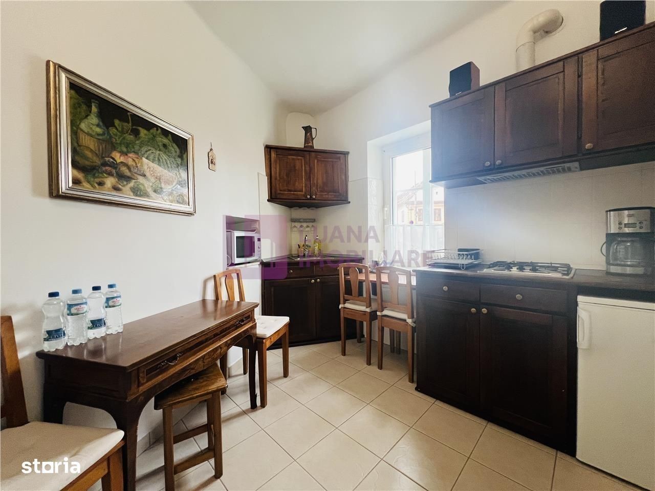 Apartament de vanzare in Sibiu - 3 camere, strada Tribunei - Ultracentral Luana Imobiliare Sibiu va propune spre vanzare un apartament ideal pentru investitie sau locuinta, intr-o locatie exceptionala! Apartamentul este situat la parterul unui imobil din zona centrala a orasului si are o suprafata utila de 86 mp. In plus, dispune de o magazie separata in curte (foarte utila pentru depozitare), pivnita, cota parte din pod si cota parte din teren (33 mp). Apartamentul nu este monument istoric și este primul de la intrarea in curtea comuna cu inca doua familii. Acest apartament este compus din: hol, baie cu geam de aerisire, dormitor, camera de zi, dormitor si bucatarie. Toate incaperile sunt mari si inalte, bucurandu-va de un spatiu luminos si aerisit. Mod de predare: Apartamentul este renovat integral si se vinde la cheie, mobilat si utilat, la pretul afisat. Exista posibilitatea de a se vinde si partial mobilat sau nemobilat, caz in care pretul se va discuta particular. Loc de parcare: Parcarile in zona sunt publice, amenajate de catre autoritatile locale. Localizare: Apartamentul se afla in zona istorica a orasului, la doar 100 m de Piata Mare, oferind o locatie excelenta atat pentru cei care doresc sa locuiasca in centrul orasului, cat si pentru cei interesati sa il includa in circuitul turistic. Unul dintre principalele avantaje ale acestui apartament de vanzare este pozitionarea sa. Desi situat in inima orasului, apartamentul este ferit de aglomeratia si zgomotul specific Centrului, fiind amplasat pe o strada secundara, intr-o curte linistita si frumos amenajata, care emana istorie. Puncte forte: - apartament in Centrul Istoric - locatie ultracentrala - pivnita si curte - pretabil investitie sau locuinta. ID intern: 1106.