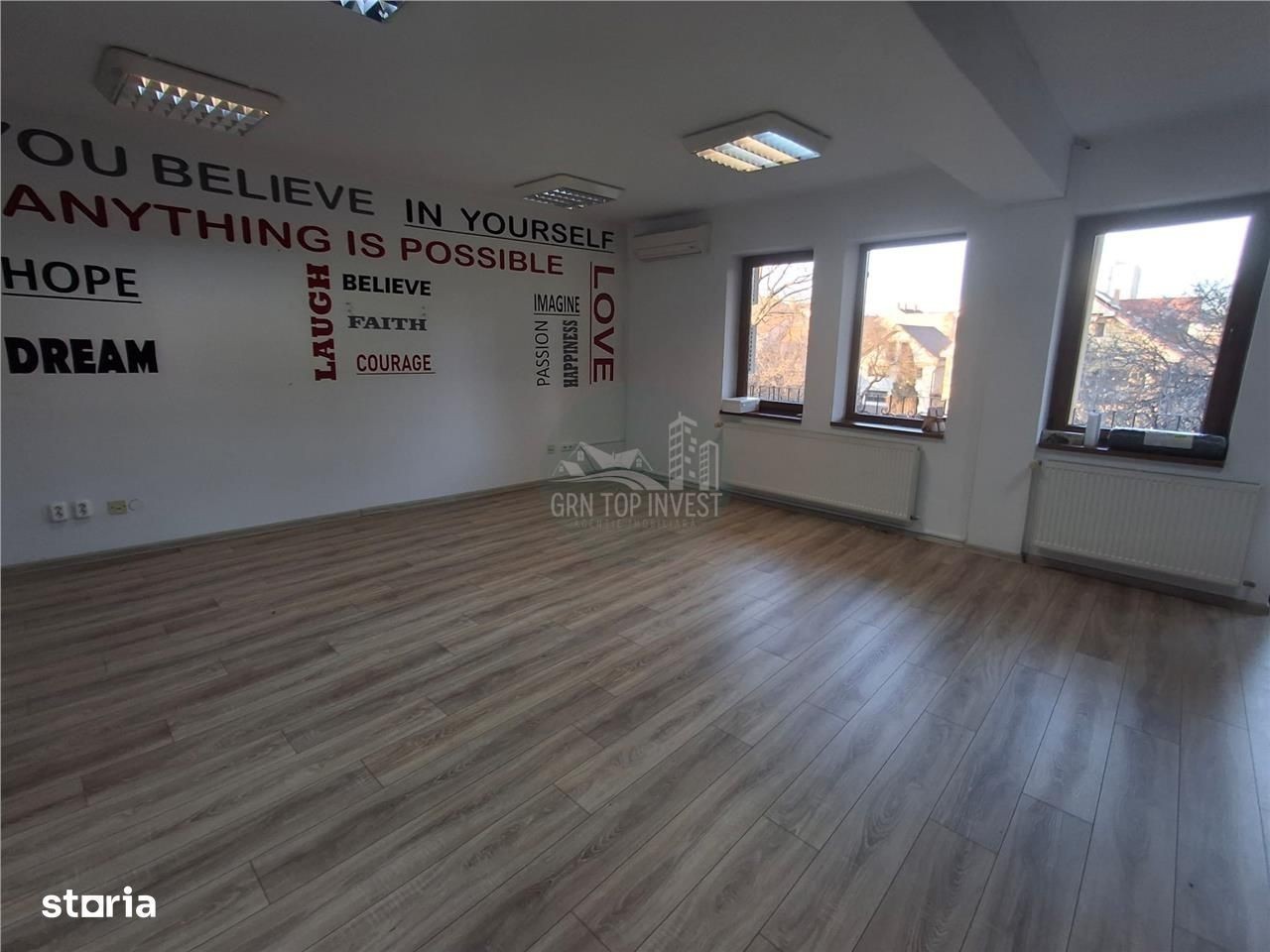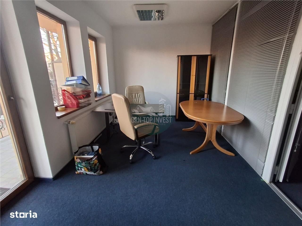 Agentia Imobiliara GRN Top Invest va ofera spre inchiriere un spatiu de birouri cu 3 camere situat la etajul 1 al unui imobil localizat in zona Parcului Subarini - Bulevardul Victoriei din Sibiu. Spatiul are o suprafata utila de 108 mp distribuiti astfel: - 3 birouri; - baie; - o chicineta; - terasa. Spatiul este pretabil pentru sediu de firma, birouri, cabinet avocatura, birou notarial, datorita pozitionarii intr-o zona foarte bine cotata pe piata imobiliara, avand in apropiere toate punctele de interes social. Beneficiaza de numeroase imbunatatiri, precum: ferestre din tamplari PVC, centrala termica, aer conditionat. Pretul este 680 euro luna, nu conteaza daca esti proprietar sau esti un client in cautarea unei proprietati, noi suntem aici pentru a facilita totul, astfel incat lucrurile sa decurga perfect! Pentru mai multe detalii si informatii precizati la telefon ca ati vazut oferta cu ID :GRN758