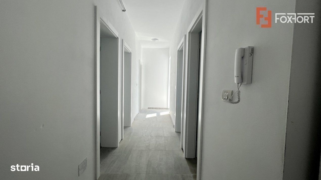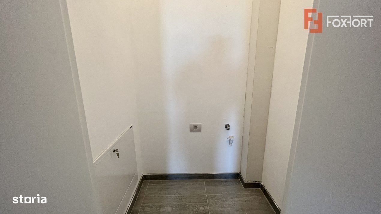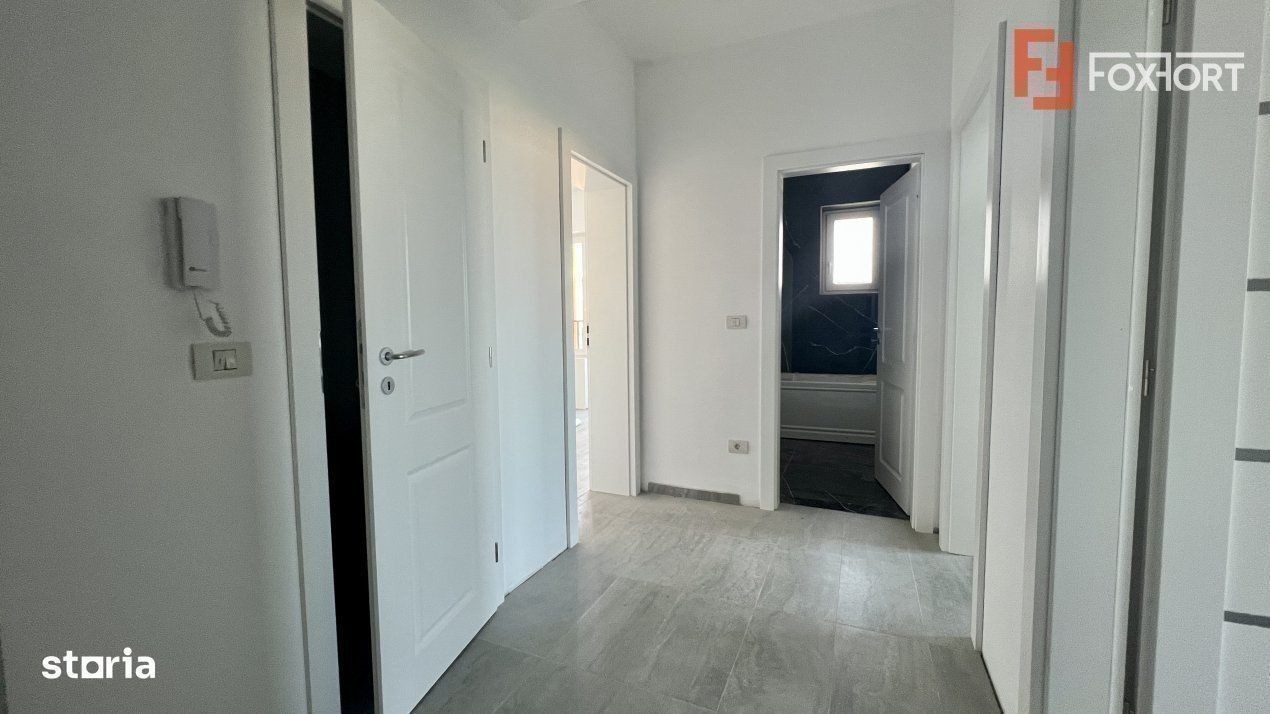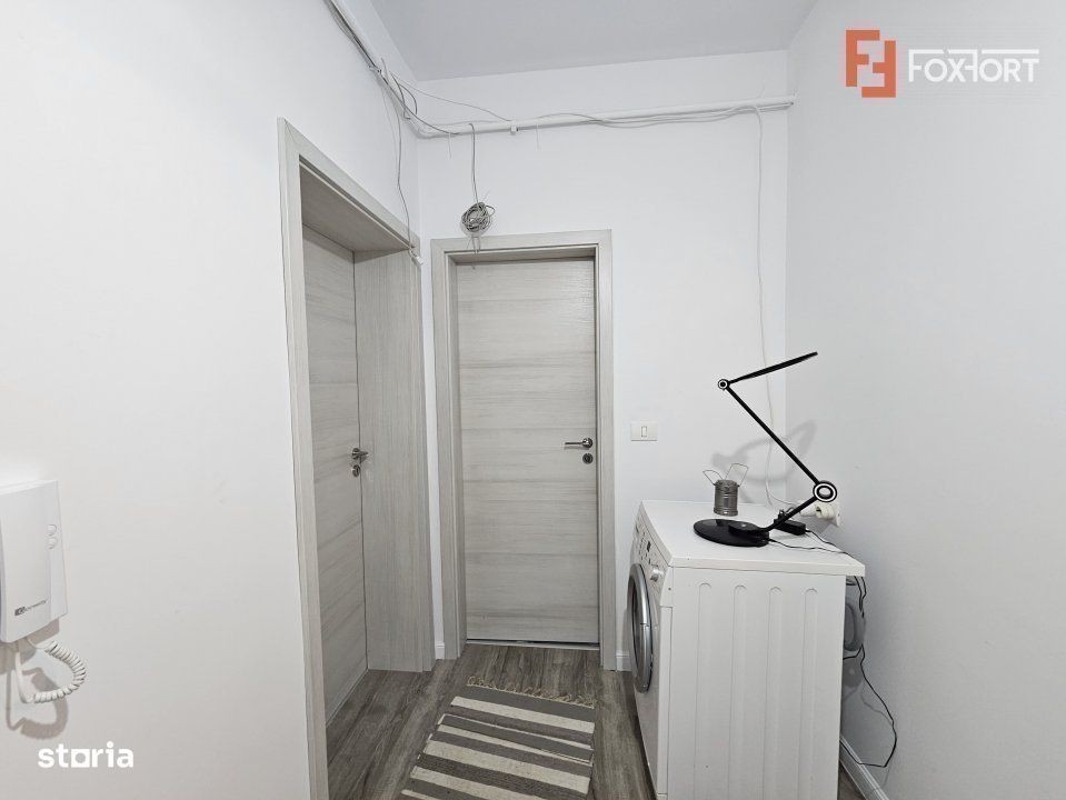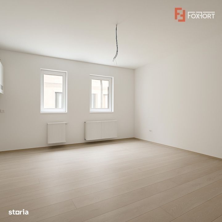 Apartament cu 2 camere de vanzare in Giroc. FOXFORT propune spre vanzare un apartament cu 2 camere, decomandat, situat in localitatea Giroc, aflat la etajul 1 intr-un bloc cu regim de inaltime pe Parter + 3 Etaje. Anul constructiei 2024, structura beton, material zidarie caramida. Suprafata utila de 56 mp + balcon de 11 mp. Apartamentul este structurat astfel: - Hol; - Bucatarie; - Baie; - Living cu balcon; - Dormitor. Finisajele interioare sunt moderne: - Usa intrare: metal; - Usi interioare: celulare; - Tamplarie ferestre: pvc; - Podele: parchet, gresie. Apartamentul se vinde nemobilat. Incalzirea se realizeaza prin intermediul centrala proprie cu incalzire prin pardoseala. Apartamentul dispune de 1 loc de parcare inscris in Cartea Funciara. Pretul este de 102.990€ + COMISION 0%. Se accepta ca si modalitate de plata surse proprii sau credit bancar. ID intern: V8837