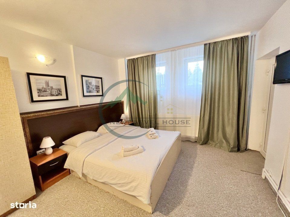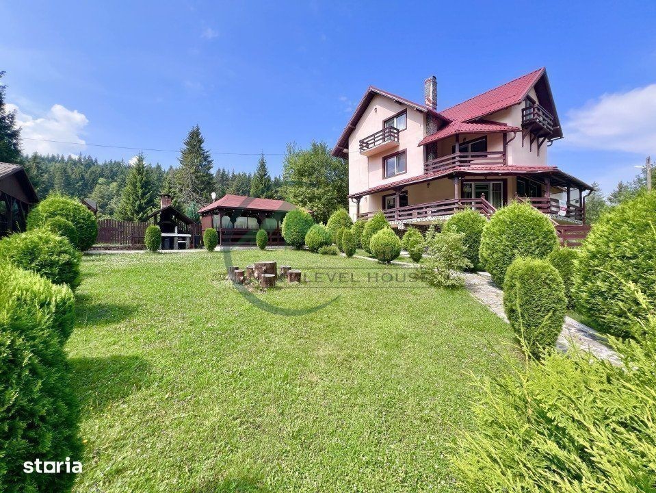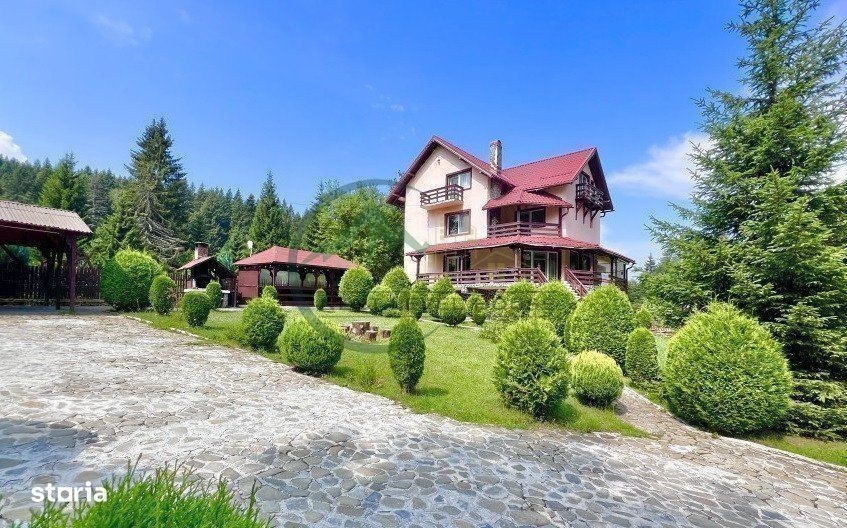 Brasov - Predeal - drumul spre Trei Brazi - pensiune si cabana - in inima naturii. La pretul afisat se adauga TVA-ul (de 19%). Vă propunem această proprietate deosebită, situată într-o zonă aflată în plină dezvoltare turistică, departe de agitația urbană și înconjurată de frumusețea pădurii. Această oază de liniște și natură oferă oportunități excelente pentru dezvoltarea unui business turistic de succes. Proprietatea dispune de un teren de 1207 mp pe care sunt amplasate două construcții bine întreținute, ideale pentru a primi oaspeți și pentru a le oferi un sejur de neuitat: 1. Pensiunea: Suprafață Utilă: 303 mp Regim de Înălțime: Demisol + Parter + Etaj 1 + Mansardă Configurație: - 7 camere duble și 2 apartamente, fiecare cu baie proprie, Living spațios în stil american, perfect pentru socializare și activități comune, Bucătărie complet echipată, Birou și multiple spații de depozitare, 3 terase și 6 balcoane, oferind vederi spectaculoase asupra împrejurimilor. 2. Cabana: Suprafață Utilă: 101 mp Regim de Înălțime: Parter + Etaj 1 Configurație: - Living open space cu bucătăria la parter, 2 dormitoare, hol și o baie la etaj. Facilități și Beneficii: - Curte Amenajată: Spațiu verde bine întreținut, ideal pentru relaxare și recreere - Zona de Barbeque: Perfectă pentru petreceri și mese în aer liber - Parcare Acoperită: Spațiu suficient pentru mai multe mașini - Conectivitate: Proprietatea este racordată la rețeaua de electricitate, apă și gaz metan, dispunând de două centrale termice legate în serie, 3 fose septice. Această proprietate reprezintă o oportunitate unică de investiție într-o zonă turistică în plină expansiune, oferind atât confortul unei locuințe moderne, cât și potențialul unui business de succes. Comision 0 pentru cumparator. Numele meu este Cristian si va stau la dispozitie pentru detalii suplimentare sau pentru programarea unei vizionari.