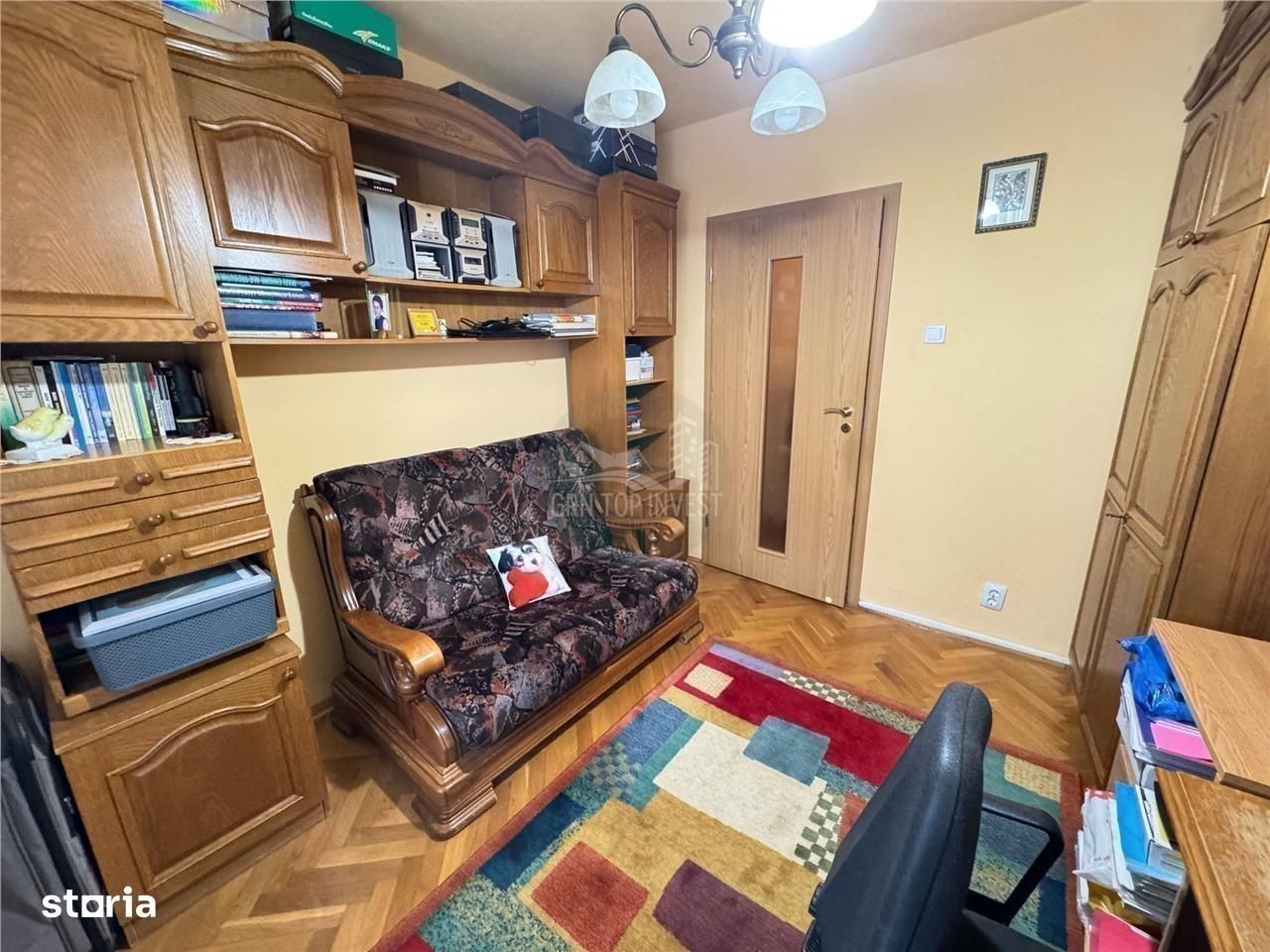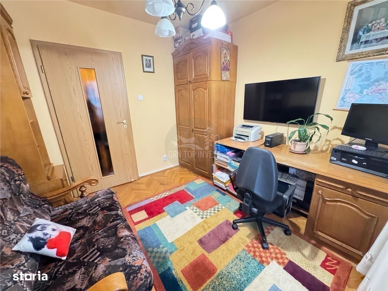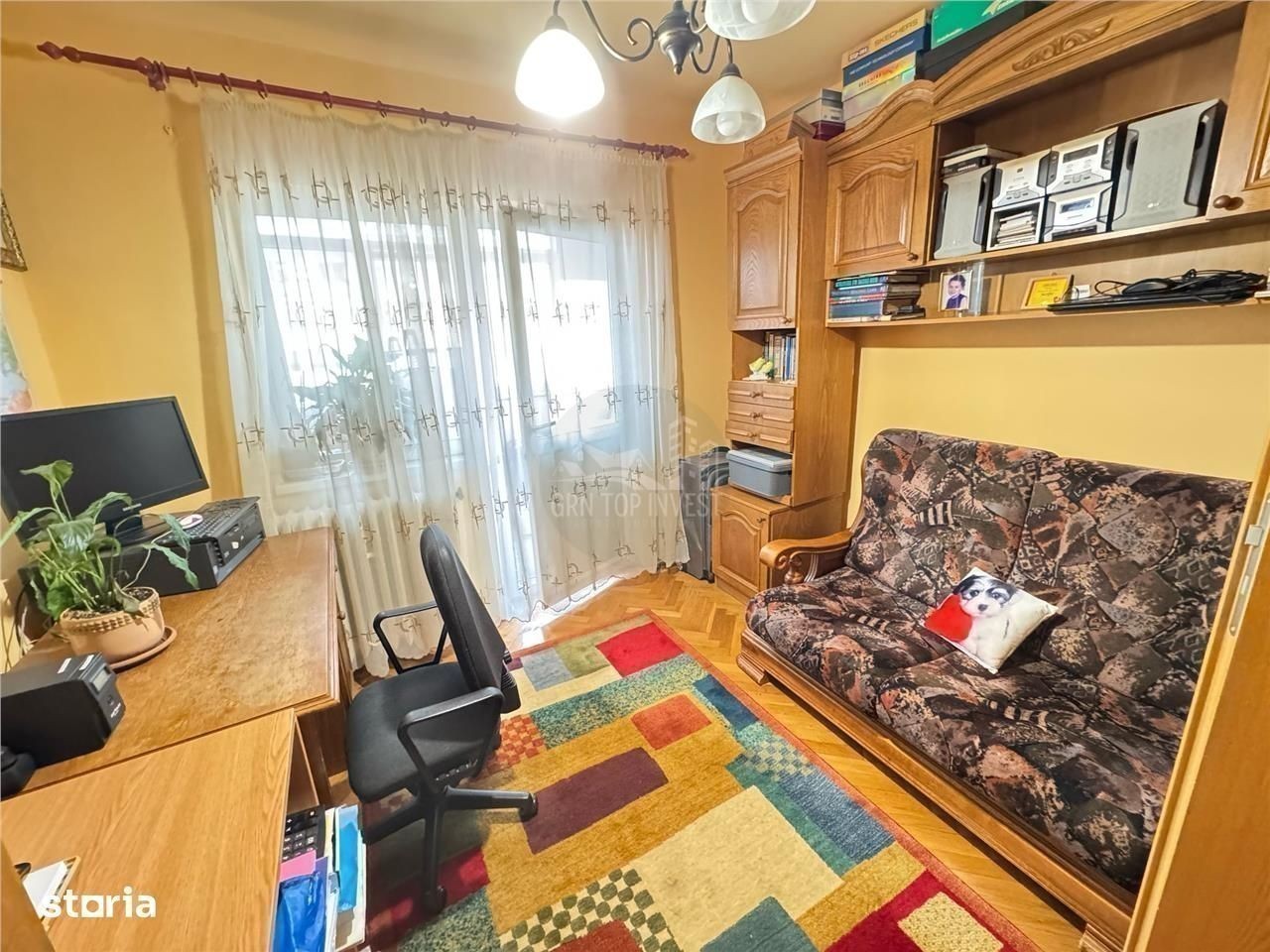 Agenția imobiliară GRN Top Invest vă oferă la vânzare un apartamment spațios, complet decomandat, cu 3 camere, 2 băi, un hol generos, o camara si o debara, balcon de 5 mp și pivniță, în Vasile Aaron, Sibiu. Imobilul este foarte spațios, având o suprafață comstruită de aproximativ 83 mp, din care suprafața utilă este de 69 mp, și se află situat la etajul 5 al unui imobil cu 10 etaje, edificat din cărămidă, izolat termic exterior. Compartimentarea acestuia este deosebită, apartamentul fiind complet decomandat. El dispune de un hol generos la intrare, din care se face acces in living-ul spatios si luminos, bucataria, separata, complet mobilata si utilata, unde se regaseste si camara, 2 bai, una dotata cu cada si cea de a 2-a este de serviciu, un dormitor, cu iesire pe balconul inchis, o debara, perfecta pentru depozitare si al 2-lea dormitor, matrimonial, spatios si luminos. Mai mult decat atat beneficiaza si de pivnita proprie. El este dotat cu parchet din lemn masiv, reconditionat, gresie, faianța, uși interioare de lemn, ușă metalică la intrare, geamuri termopan, aer conditionat etc. Apartamentul se vinde complet mobilat si utilat cu toate electrocasnicele necesare: aragaz, hota, cuptor, combina frigorifica etc. Este situat în Sibiu, zona Vasile Aaron, o zonă liniștită, de mare interes public, fiind în proximitatea mai multor puncte importante: școli, grădinițe, supermarketuri, zone comerciale, mijloace de transport în comun, farmacii, piata (Piata Agroalimentara Vasile Aaron) etc. Apartamentul se vinde mobilat și utilat, la prețul de 114.000 Euro, negociabil.