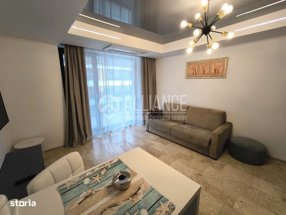 Vindem acest apartament de vacanta superb situat in complexul Novum By The Sea - Olimp, pozitionat la doi pasi de plaja Olimp. Complexul este frumos amenajat cu spatii verzi si copaci, cu locuri de relaxare si agrement, este monitorizat video iar accesul este privat cu bariere si paza umana. Interioarele blocului sunt amenajate modern cu finisaje de inalta calitate, receptie, lift, parcare subterana (1 loc dedicat apartamentului inclus in pret). Apartamentul se vinde „la cheie„ mobilat si utilat complet (mobilier Rovere), are incalzire in pardoseala si este finisat elegant. Combo bucatarie open space plus camera de zi si dormitor (ambele camere au acces pe terasa) iar baia este cu dus. Se adauga tva 21%.