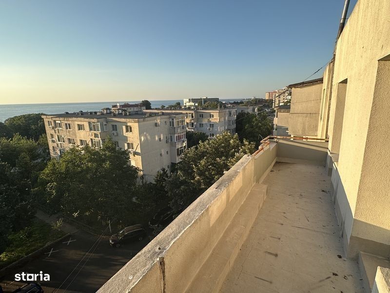 Apartament cu vedere directa la mare, in prima linie de blocuri. Intre bloc si faleza se afla parcul Tosca deci nu se poate construi. 5 min de mers pe jos de plaja. Alte obiective de interes foarte aproape: liceu, supermarketuri, spital, piata, parc de distractii, restaurante, Saturn. Apartamentul are 2 niveluri, fiind situat la etajul 4 si 5 din acest bloc cu 5 etaje. Nivelurile sunt unite prin scara interioara si scara blocului. Momentan este golit in vederea amenajarii si re-compartimentarii, se pot uni camere pentru a crea open-space living. balcon pe fiecare etaj, cel de pe etajul superior este foarte mare si ofera si acces direct pe bloc. Racordat la toate utilitatile inclusiv gaze.