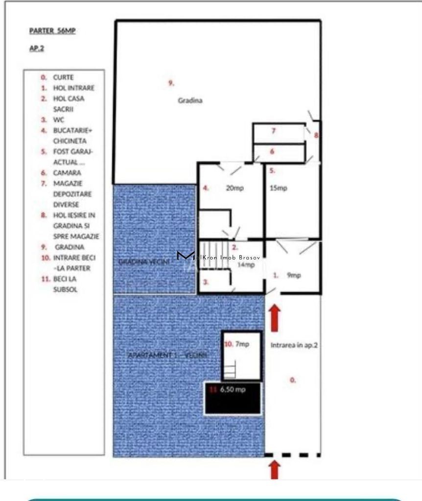 Agentia Malkron Imob va ofera spre vanzare un apartament spațios situat într-o vilă, desfășurat pe două niveluri, ideal pentru o familie numeroasă sau pentru cei care doresc un spațiu generos și bine compartimentat. Compartimentare: Parter: Hol generos și casa scării Garaj - spațiu protejat pentru mașină Magazie - ideală pentru depozitare WC de serviciu Bucătărie spațioasă cu ieșire directă în grădină Cămară pentru depozitare suplimentară Chicinetă - pentru un plus de funcționalitate Etaj: 5 dormitoare - ideale pentru familie Living generos - perfect pentru relaxare și socializare 2 băi moderne și spațioase Hol cu acces facil către toate camerele Terasă - spațiu deschis, ideal pentru momente de relaxare Alte beneficii: Acces la grădină proprie - spațiu verde perfect pentru relaxare și activități în aer liber Vila oferă intimitate și confort sporit Spații bine organizate și funcționale În curte mai locuiește o altă familie la parter, cota parte din terenul total de 456mp este de doar 18% Pentru mai multe detalii și vizionare, contactează-ne!