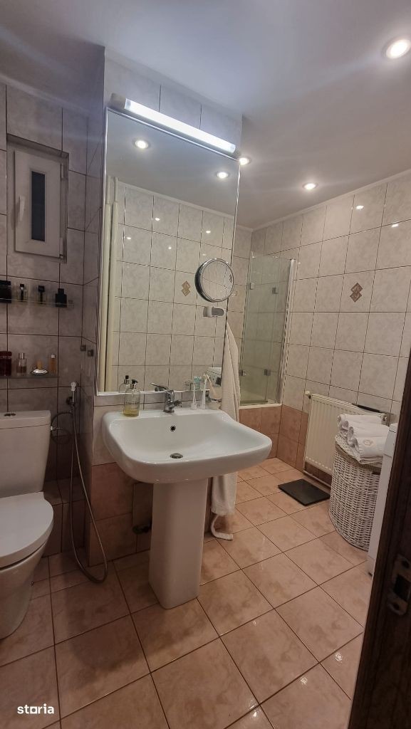 Vand apartament situat in Pitesti, ultracentral, langa clinica stomatologica Dr. Theo. Este compus din doua apartamente de 3 si doua camere, unite intre ele din constructie. Are 4 dormitoare, doua bai, un birou, logie si camera de zi in suprafata de 53 mp. Are suprafata construita de aprox. 200 mp, din care utili 147 mp si 30 mp de balcoane. Vederea este spre piata Vasile Milea si pe spate, spre parcarea etajata.