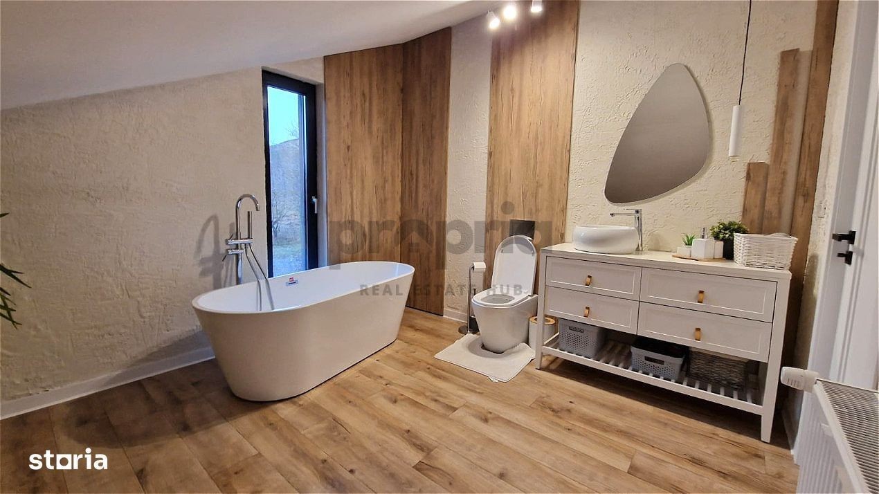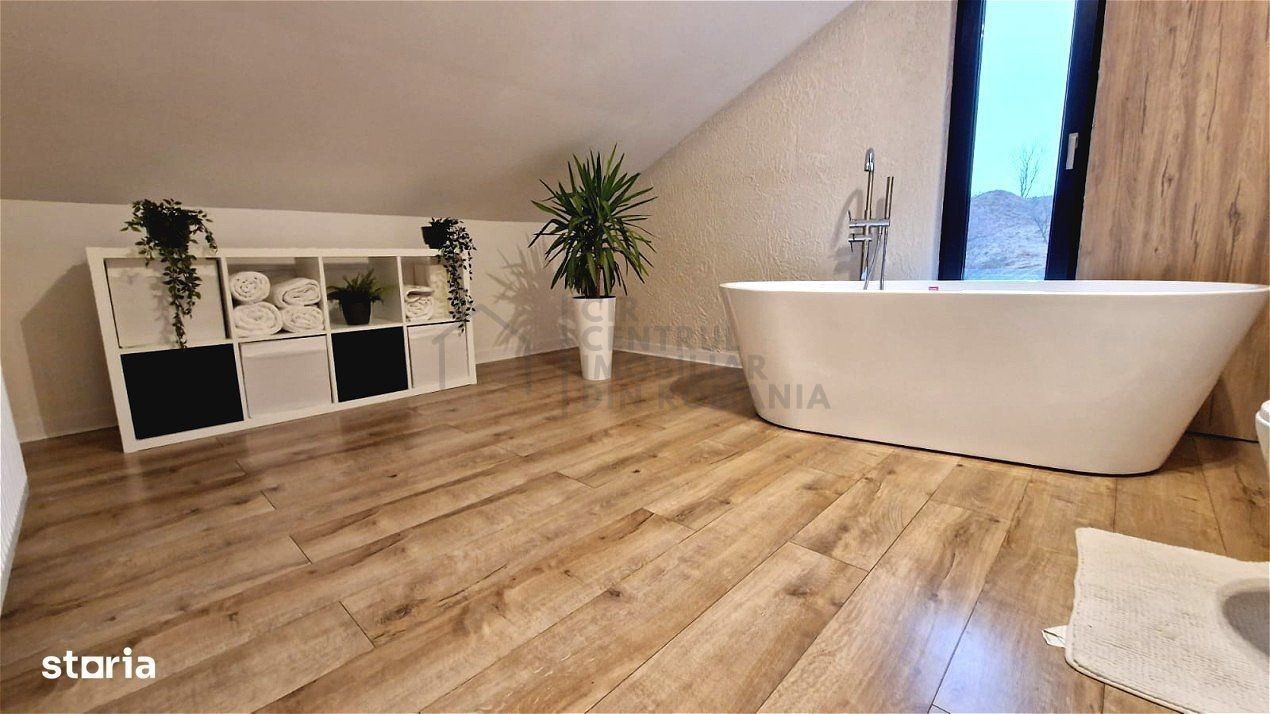 Vilă Premium în Sânpetru - Confort, Natură și Spațiu Generos! Locație: Zonă liniștită, aproape de Rezervația Naturală Dealul Lempes, la 14 minute de Brașov. Compartimentare inteligentă - P +E +M: Parter: Garaj, living open-space cu bucătărie, grup sanitar, terasă de 29 mp. Etaj: Dormitor matrimonial cu baie & dressing, dormitor secundar, baie, balcon. Mansardă: 2 dormitoare (unul cu balcon), baie, dressing generos. Dotări premium: Încălzire în pardoseală, centrală termică proprie Tamplărie PVC cu geam termopan Garaj + 3 locuri de parcare în curte Racordare la rețeaua de canalizare Facilități și acces: Drumeții și relaxare - Rezervația Lempes la câțiva pași Restaurante, cafenele, unități de învățământ în apropiere Transport public la 5 minute Se vinde complet mobilată. Achiziție posibilă prin credit ipotecar. Hai să o vezi! Programează o vizionare!