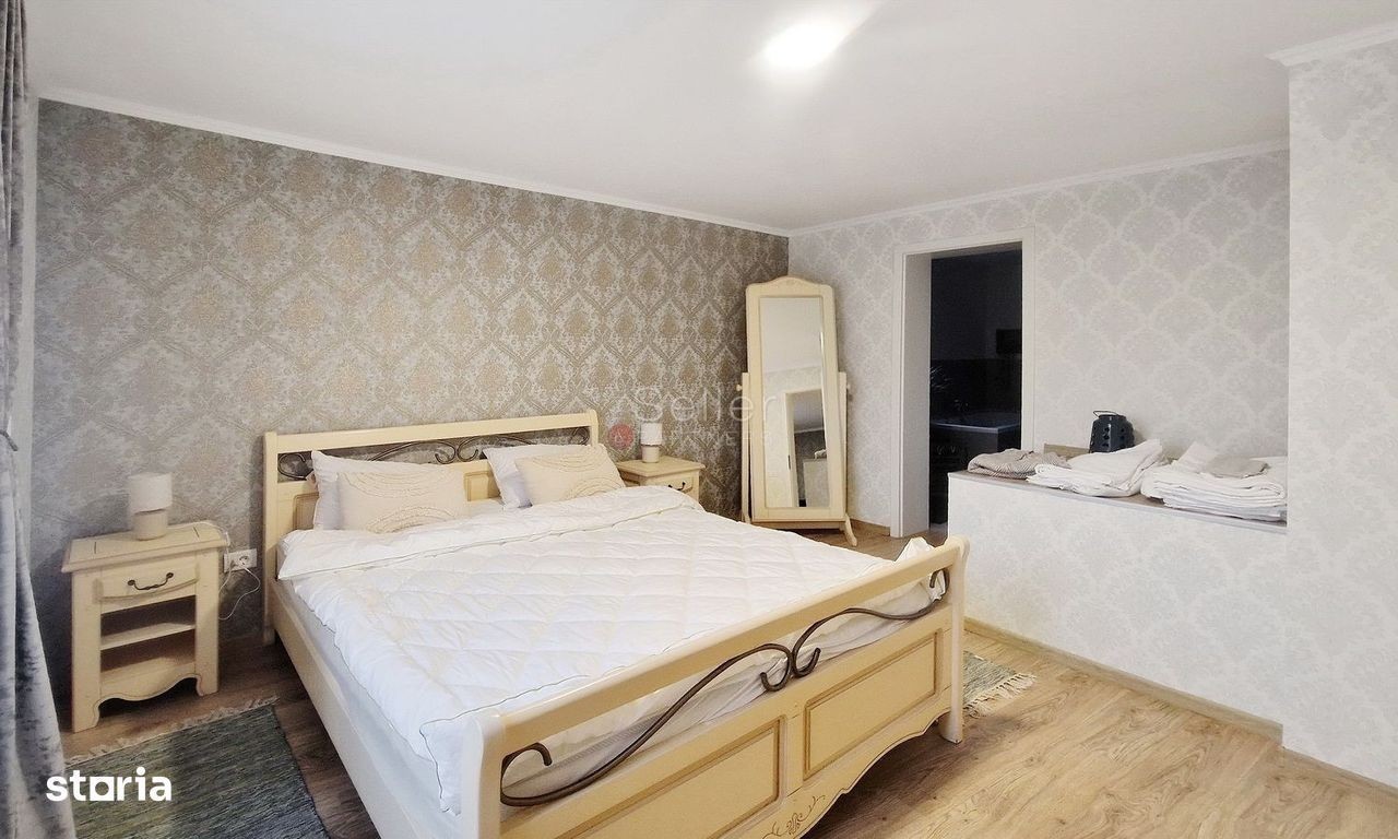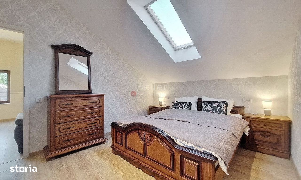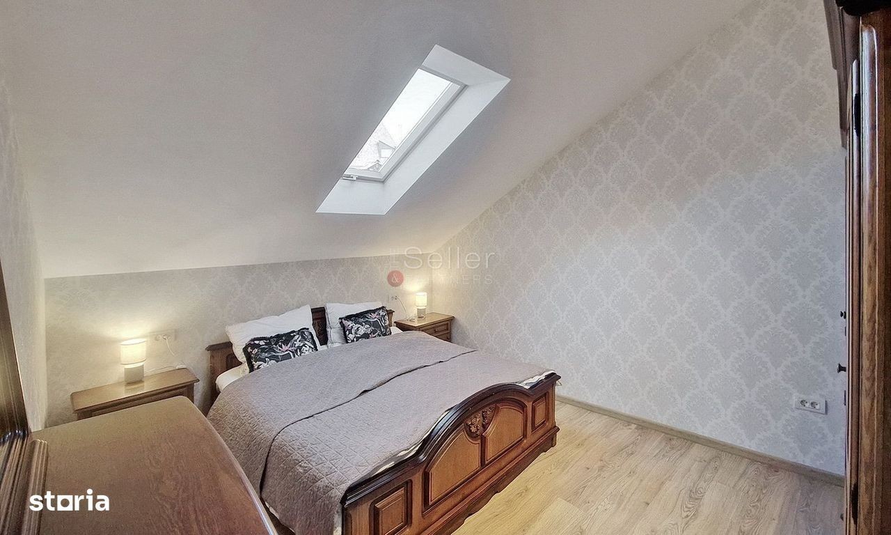 LOCALIZARE: Acest imobil este situat in Cartieru Schei, in imediata apropiere a Pietei Unirii. COMPARTIMENTARE: Cu regim de inaltime P+1+M, vila este compartimentata in doua apartamente fiind dispusa astfel: Parter: - un spatiu tehnic; - holul de intrare si casa scarii; - garajul pentru o masina. ETAJUL 1: - living, de tip open-space, cu suprafata generoasa; - zona de dining, care este inclusa in zona de zi; - bucataria, care este de tip open space; - baia, cu aerisire naturala si cada. MANSARDA: - living, de tip open-space, cu suprafata generoasa si vedere panoramica; - zona de dining, care este inclusa in zona de zi; - bucataria, care este de tip open space si este mobilata si utilata; - baia, fiind dotata cu aerisire naturala si cada. DOTARI: - centrala termica; - incalzire in pardoseala; - tamplarie PVC, cu geam termopan; - garaj pentru o masina. Tranzactionarea proprietatii se va face cu mobilierul aferent prezentei ofertari. IMPREJURIMI: Imobilul este situat intr-o zona de vile, accesul auto, pana zona de centru a orasului, facandu-se in cca. 4 minute. ATRACTII ZONA: Piata Unirii si Biserica Sfantul Nicolae. ACCESIBILITATE: Transport public în apropiere la aproximativ 350 m. FORMA ACHIZITIONARE: Se accepta plata prin accesare credit. NOTA: Informatiile prezentate reflecta situatia reala a proprietatii, fara a constitui o oferta contractuala. Aceste date au fost obtinute verbal, de la titularul de drept al imobilului. Structura acestei prezentari nu poate fi reprodusa, fara acordul scris al The Seller and Partners.