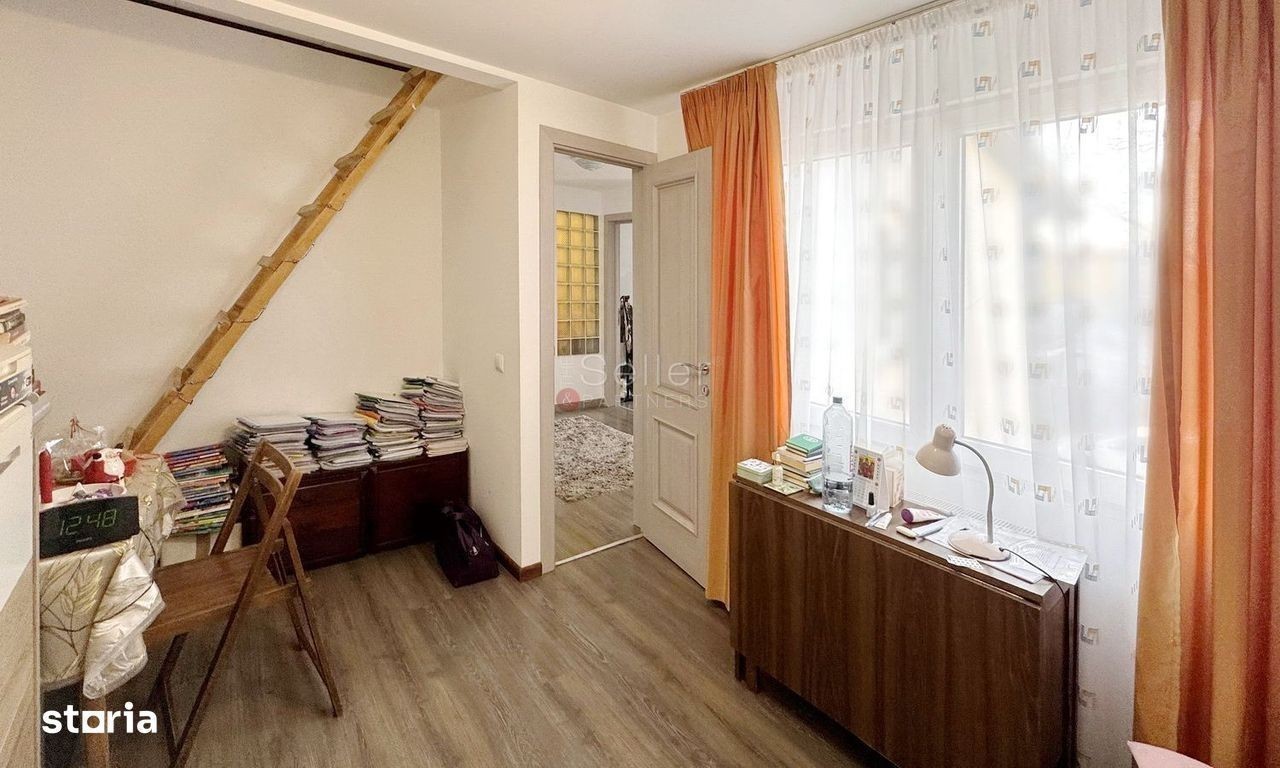 LOCALIZARE: Acest imobil este situat in zona Craiter, in imediata apropiere a supermarket-ului Profi, a mai multor magazine mici de cartier, farmacii, precum si a spatiilor verzi. COMPARTIMENTARE: Cu regim de inaltime S+P+E+M, vila este dispusa astfel: SUBSOL: - pivnita; PARTER: - living, suprafata generoasa; - bucataria, care este inchisa, aceasta avand inclusa si o zona de dining; - baie, care detine aerisire ventilata si este dotata cu cada; ETAJUL: Alocat zonei de noapte, acesta detine: - un dormitor matrimonial, ce detine o suprafata generoasa; - al doilea dormitor, care poate fi transformat in birou, din acesta facandu-se accesul in mansarda; - baie, care detine aerisire ventilata si este dotata cu dus; - dressing; MANSARDA: - aceasta poate primi diverse destinatii, cum ar fi spatiu office sau depozitare; DOTARI: - centrala termica; - tamplarie PVC, cu geam termopan; - terasa exterioara; - posibilitatea de a se amenaja un loc de parcare in curte; - canalizare. Tranzactionarea proprietatii se va face semi-mobilata. IMPREJURIMI: Imobilul este situat intr-o zona de vile accesul auto, pana la zona de centru a orasulu facandu-se in cca. 8 minute. ATRACTII ZONA: Magazine, restaurante, parcuri, școli. ACCESIBILITATE: Transport public în apropiere. FORMA ACHIZITIONARE: Nu se accepta plata prin accesare credit. NOTA: Informatiile prezentate reflecta situatia reala a proprietatii, fara a constitui o oferta contractuala. Aceste date au fost obtinute verbal, de la titularul de drept al imobilului. Structura acestei prezentari nu poate fi reprodusa, fara acordul scris al The Seller and Partners.