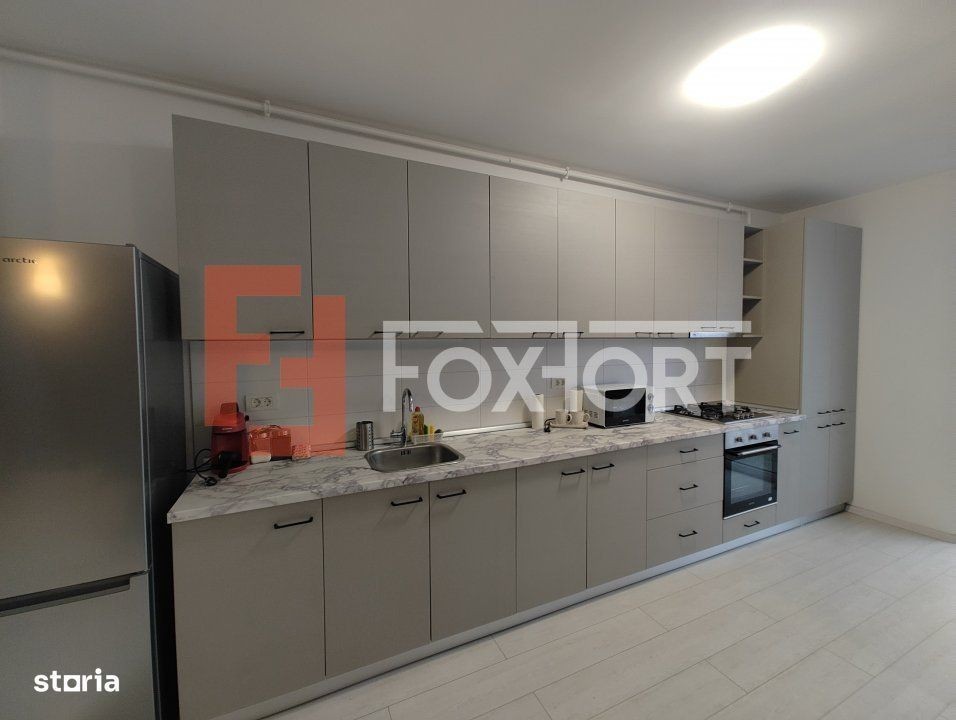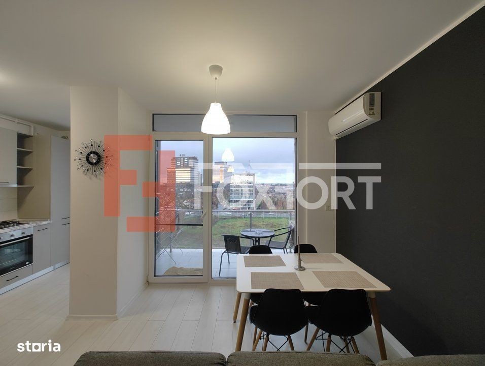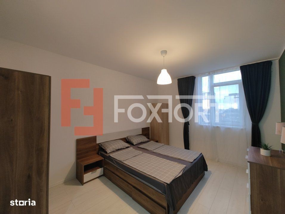 Apartament modern, 2 camere Open-Space de inchiriat in Timisoara, zona Aradului FOXFORT propune de inchiriat un apartament cu 2 camere, open space, situat in localitatea Timisoara, zona Aradului, aflat la etajul 8 intr-un bloc cu regim de inaltime pe Parter + 9 Etaje. Anul constructiei 2018, structura beton. Suprafata utila de 50 mp + balcon de 4 mp. Apartamentul dispune de o priveliste superba asupra orasului de care sa va bucurati impreuna cu prietenii vostri. Apartamentul este structurat astfel: - Hol; - Bucatarie + Living; - Baie; - Dormitor; - Balcon. Finisajele interioare sunt moderne: - Usa intrare: lemn; - Usi interioare: lemn; - Tamplarie ferestre: pvc; - Podele: parchet, gresie. Apartamentul se inchiriaza mobilat si utilat: cuptor, hota, aragaz, masina de spalat rufe, frigider cu congelator. Incalzirea se realizeaza prin intermediul centralei proprii prin pardoseala. Apartamentul dispune de sistem de climatizare (A.C.), 1 loc de parcare. Pretul este de 600€ + garantie 400€ + comisionul standard al agentiei. Se accepta ca si modalitate de plata surse proprii. Indicator performanta energetica: Clasa A ID intern: C8027