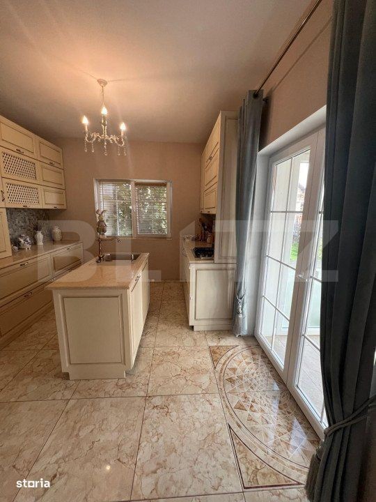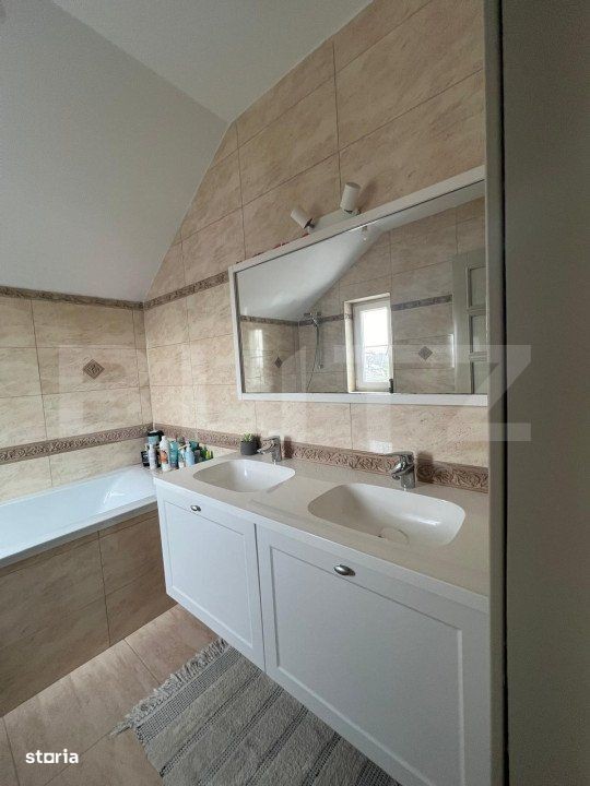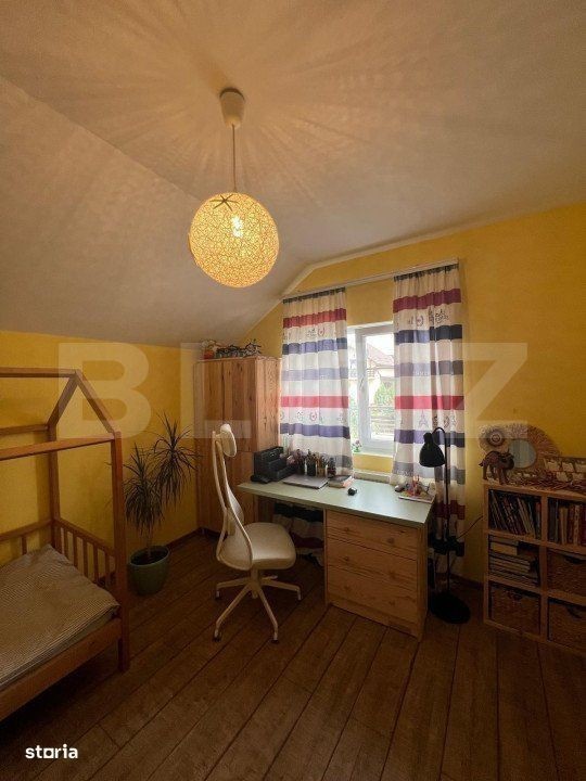 Blitz va propune spre achizitie această casă din Miroslava care oferă o combinație excelentă de confort modern și dotări de calitate superioară. Cu o suprafață utilă de 119 mp, pe un teren de 450 mp amenajat cu gazon și arbuști ornamentali, proprietatea este bine compartimentată și funcțională. Printre avantajele casei se numără: Parterul dispune de un hol, un living cu bucătărie open space, un birou și o baie. Etajul are un hol, trei dormitoare, dintre care unul matrimonial cu dressing și baie proprie, și un balcon. Structura casei este din cărămidă și beton armat, iar izolarea este eficientă datorită termosistemului de 10 cm EPS 100 și stratului de vată bazaltică de 10 cm în pod. De mentionat ca parterul are o inaltime de aproape 3 m conferind un volum si prestanta spatiului. Ferestrele au tâmplărie PVC cu 9 camere, iar încălzirea în pardoseală este disponibilă la parter inclusiv in baie si cabina de dus si la terasa inchisa, în timp ce la etaj se folosește încălzirea prin calorifere. Casa este dotată cu un șemineu realizat manual de un mester din Germania dupa tehnica anglo-saxona, care menține căldura timp de 24 de ore. Semineul este construit astfel incat incalzeste si etajul. Desigur alternativ casa dispunde de o centrala pe gaz in condensare. Materialele folosite sunt de înaltă calitate, cum ar fi gresia și faianța din Spania și ușile din stejar. În plus, proprietatea are o pivniță de 3 mp și o magazie de 6,5 mp, oferind spațiu suplimentar de depozitare. Utilitati : Gaz, apa, curent electric. canalizare prin fosa septica de 12mc Va asteptam cu drag la vizionare. Disponibilă pentru mutare imediată, această casă poate fi o alegere excelentă pentru cei care caută confort și calitate într-o zonă liniștită.
