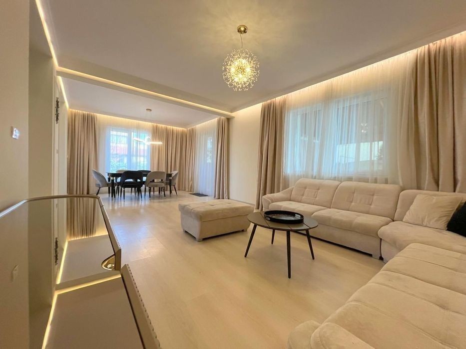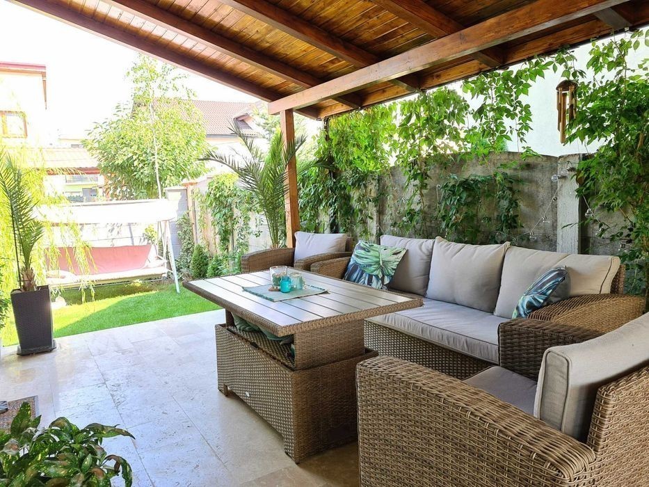 Casa este situata pe colt, 2 fronturi stradale cu acces auto in curte. Pozitie excelenta, aproape de Lidl si la 7 min pe jos de statia M14 pe principala. Strada asfaltata si parc de joaca vis-a-vis. Este ideala pt iubitorii de natura si liniste avand o curte amenajata cu plante decorative si pomi fructiferi. Suprafata totala: 160mp Util: 118 mp Aprenta sol: 80mp Curte: - Teresa placata cu travertin - Spatiu depozitare - Suprafata: 240 mp Parter: - Living spatios de 35 mp - Dining - Bucatarie - Baie cu dus - Zona depozitare cu masina de spalat haine Etaj: - dormitor matrimonial cu baie proprie cu cada si dressing - Birou - Camera - Baie cu cada - Pod de depozitare Centrala termica prin condensare, incalzire in pardosea, tamplarie tripan si izolatie de 10-15cm. Locatie: Str Freziei