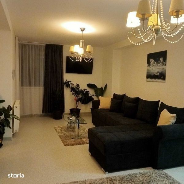 Apartament 3 camere 95 mp² CETATE zona Stadion. Apartamentul este complet mobilat cu mobilier si electrocasnice noi,prima inchiriere ! Compartimentare : 2 dormitoare mari,dormitorul matrimonial avand baie proprie cu cada dubla,living generos cu bucatarie open space,baie de serviciu cu cabina de dus,dressing,2 balcoane,loc de parcare. Apartamentul are acces rapid la scoli,gradinite,supermarket magazine fiind ideal pentru familii.