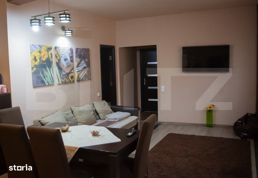 Agentia Imobiliara COV-ALIN, propune la vanzare apartament 3 camere situat la casa zona Schei, etaj 1/1, suprafata utila 80 mp, doua bai, centrala termica, ferestre cu geam termopan, parchet, usi noi, izolat interior si exterior, supraveghere video, boxa 8 mp in pod intabulata pe apartament, camara, beci, loc parcare, curte comuna. Apartamentul se vinde mobilat si utilat.