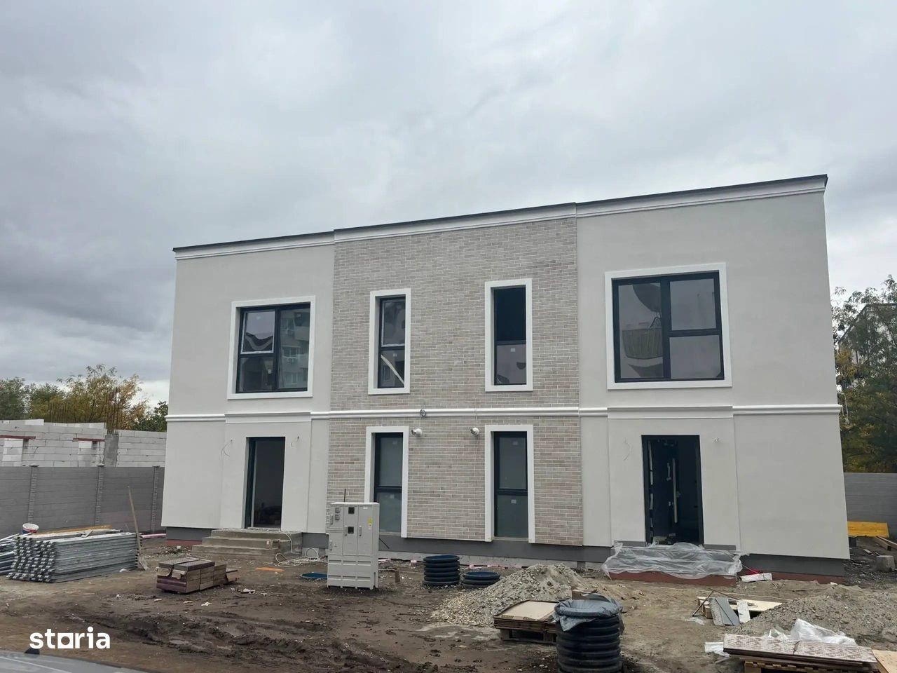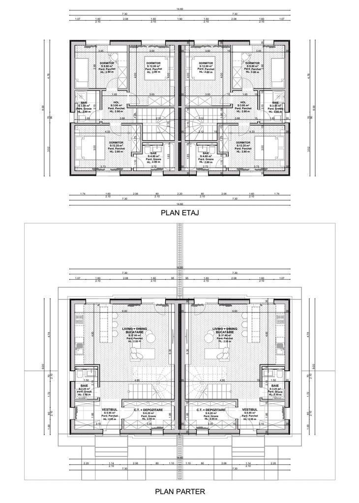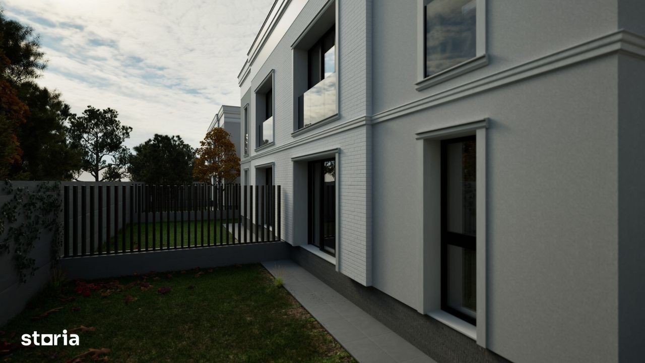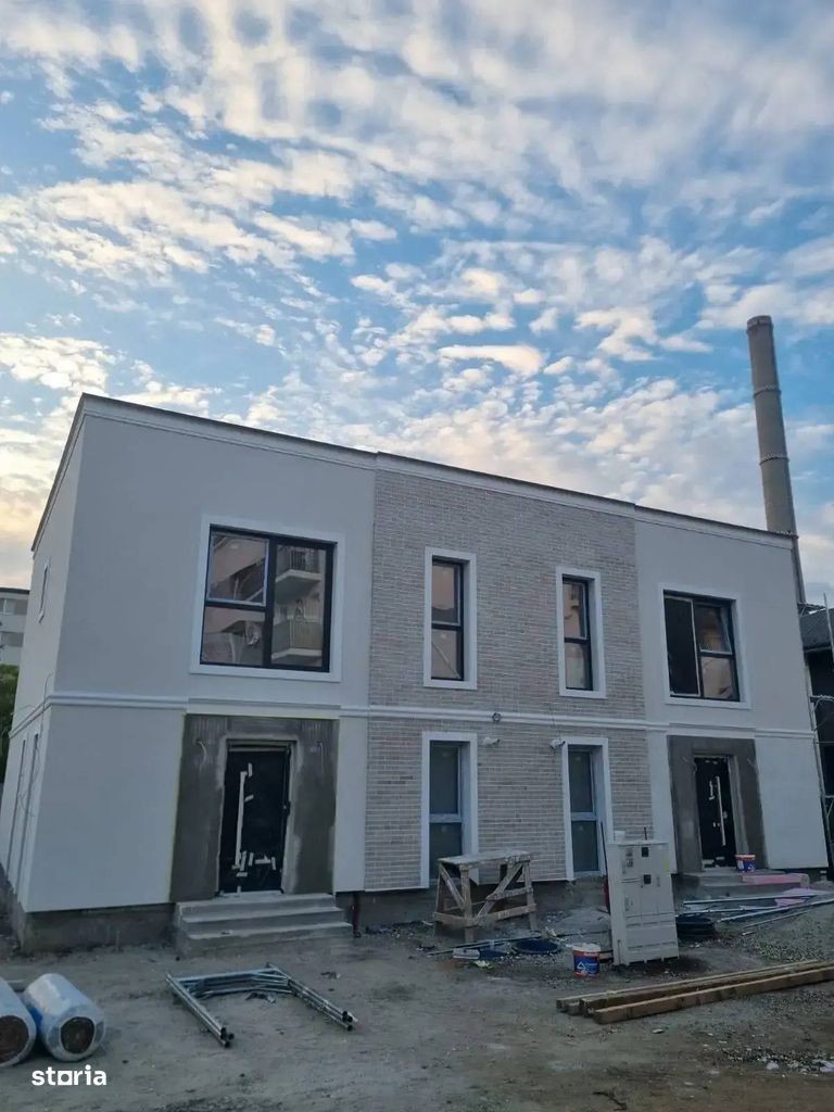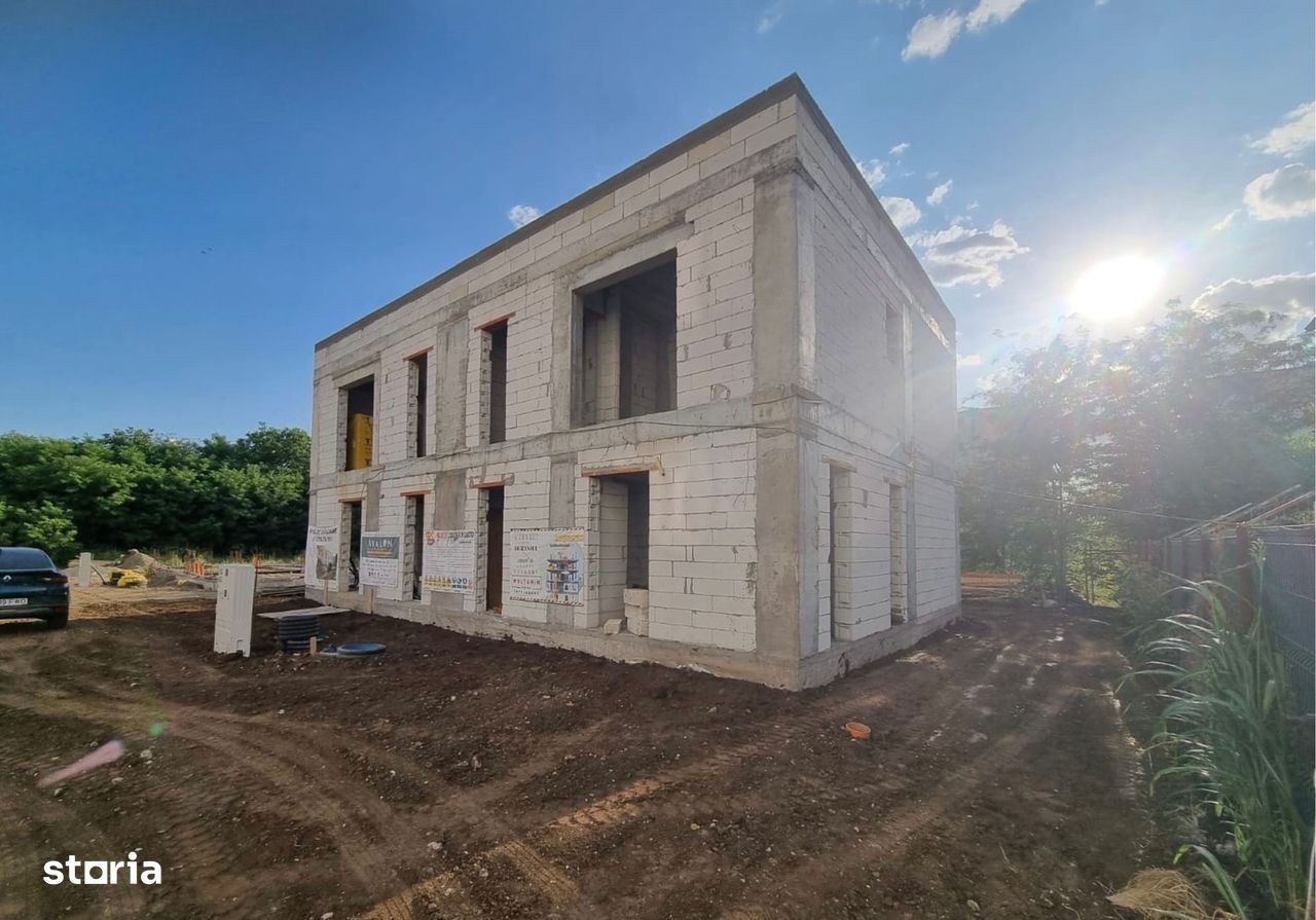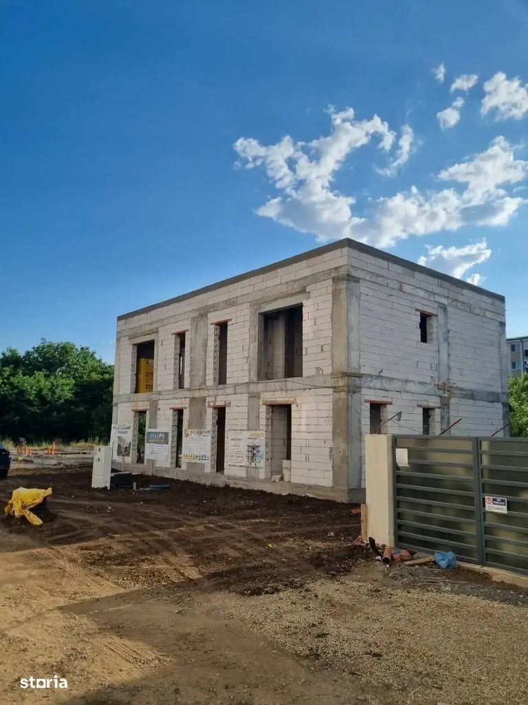 Va propunem spre vanzare o casa P+1 - Tip Duplex cu 4 camere, situata in zona de Sud a Capitalei si dispune de 100 mp utili interiori si curte proprie de 110 mp. Primele 2 case sunt aproape de finalizare! Mai este 1 disponibila din primul lot care se finalizeaza in luna Octombrie. In imediata apropiere se regasesc numeroase centre comerciale (Carrefour Grand Arena, Selgros, Auchan, Hornbach, Jumbo, Metro), gradinite, scoli, spitale, Parcul Tudor Arghezi si mijloace de transport in comun. Compartimentarea casei este ingienioasa si gandita pentru o familie tanara, aceasta fiind impartita astfel: - la Parter regasim camera tehnica si zona de spalatorie, un vestibul, o baie prevazuta cu dus si o zona generoasa de living cu bucatarie open - space cu acces la terasa din spatele casei, toate insumate au o suprafata utila de 53,15 mp - la Etaj avem un dormitor matrimonial prevazut cu dressing si baie proprie si inca 2 dormitoare ale copiilor cu o baie centrala, toate insumand o suprafata utila de 46,15 mp. Fiecare casa beneficiaza in total de 175 mp teren din care amprenta este de 65mp si raman 110 mp liberi. Locurile de parcare fiind asigurate in lateralul casei. Unitatile dispun de incalzire in pardoseala si centrala proprie. Constructia este realizata cu cadre de beton armat cu compartimentari de caramida Ytong de 15 cm la interior, iar la exterior cu caramida de 30 cm + izolatie de 10 cm. Tamplaria este realizata cu geamuri tri-pan de sus pana jos pentru a beneficia de lumina naturala. Finisajele interioare sunt de cea mai buna calitate: - in camere se foloseste parchet pentru incalzire in pardoseala - in bai si la bucatarie ceramica de import (Spania sau Italia) - usi interioare Italia - sanitare in bai Ideal standard. Pentru mai multe detalii nu ezitati sa ma contactati, Alin CIrstea, telefon: