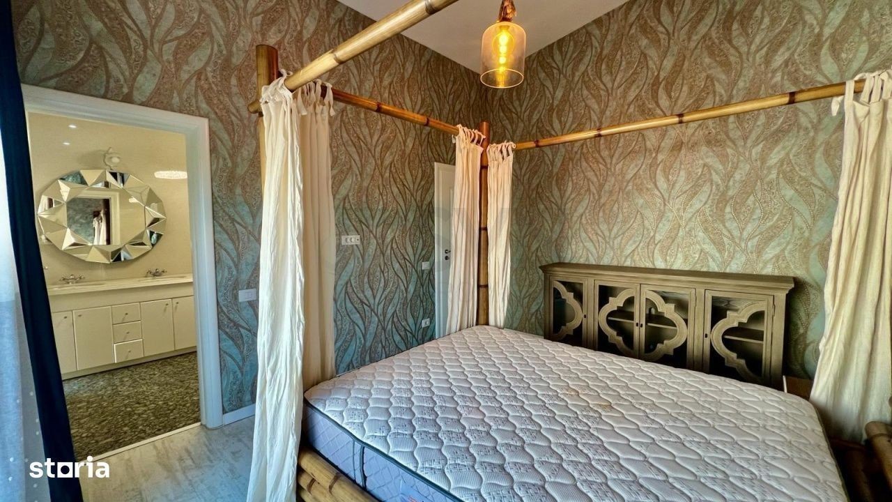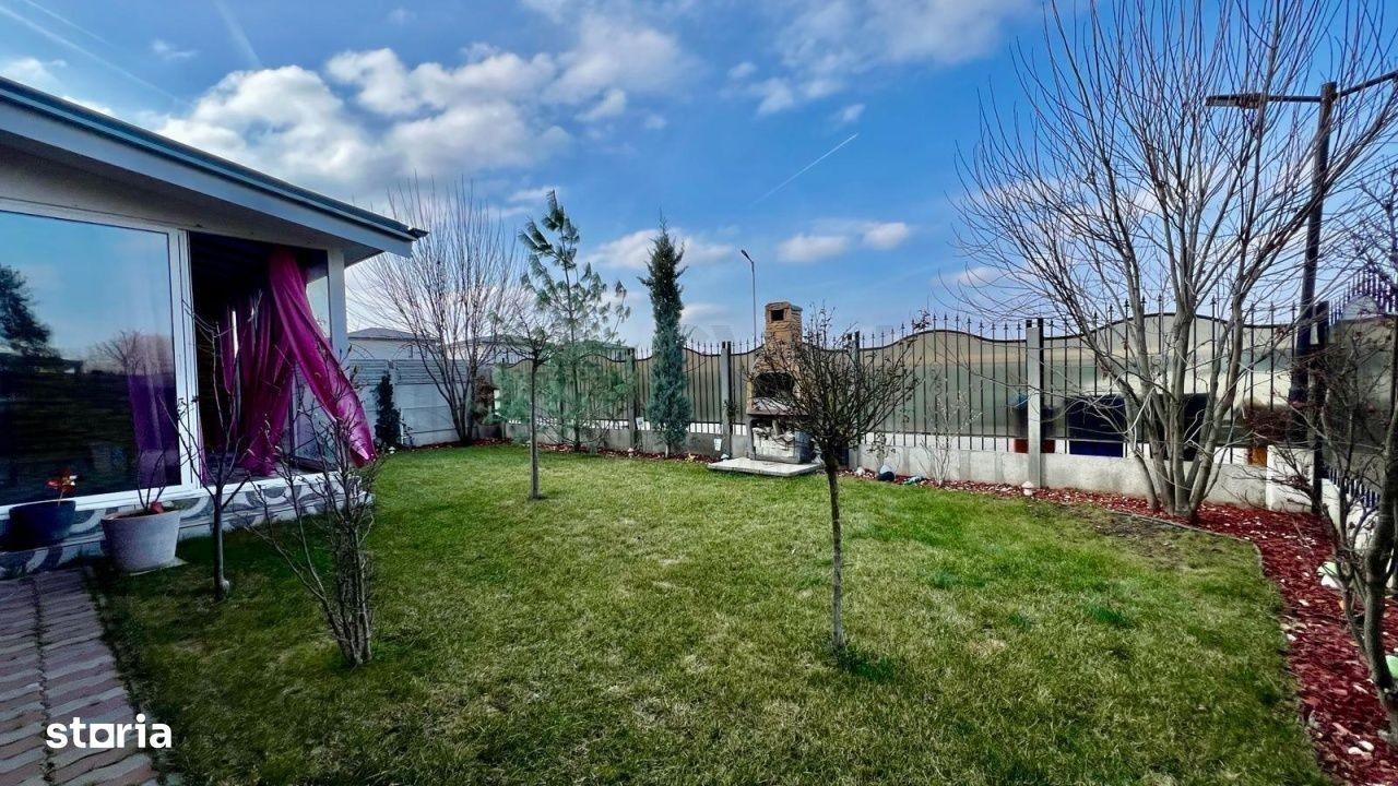 REV2003619 SVN Residentialist va propune spre vanzare o vila deosebita individuala aflata intr-un complex securizat din zona Tunari. Vila dispune de un living generos de 40 mp cu zona de dining si semineu, separat bucatarie inchisa de 16 mp mobilata si utilata cu insula centrala. La etaj avem un hol cu cele 3 dormitoare spatioase din care dormitorul matrimonial cu baie proprie, inca o baie ce deserveste cele 2 dormitoare. Casa are si o terasa acoperita unde se poate lua masa si o curte generoasa de 200 mp. Arhitectura deosebita cu care casa a fost proiectata si decorata, cu spatii de depozitare, eficient compartimentata ofera oaza de liniste in imediata apropiere a Bucurestiului cu acces facil catre zona de nord. Pozitionarea casei este una ideala in imediata apropiere a mijloacelor de transport in comun, cateva minute de centru comercial Baneasa, scoli si gradinite. Vila se vinde mobilata si utilata asa cum este prezentata in poze cu finisaje de exceptie cu marmura si piatra, terasa inchisa in termopan si gradina amenajata cu sistem de irigatii programat si brazi. De asemenea curtea are o casuta in lateral ca si dependinta pt depozitare, si loc de parcare iluminat solar. Casa este disponibila si la inchiriere complet mobilata si utilata la 1600 euro lunar. Pentru mai mute detalii si vizionari va rog sa ma contactati.