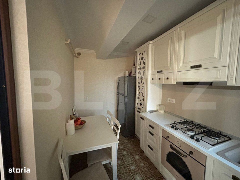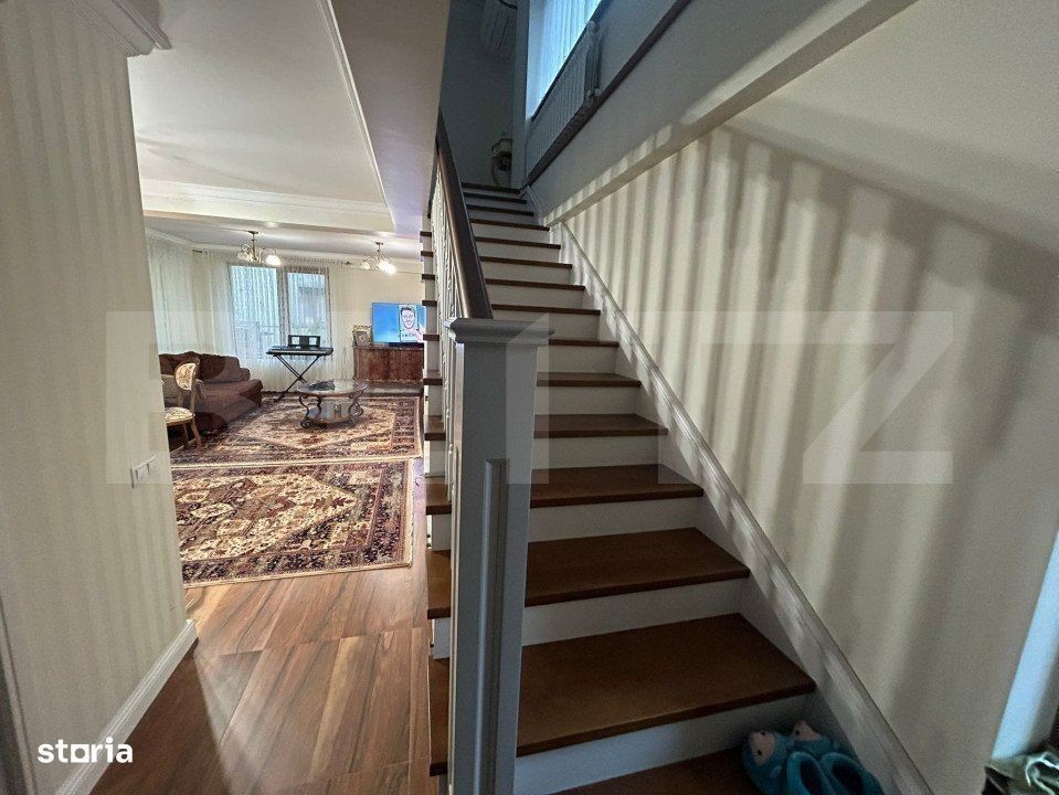 Blitz vă propune un apartament deosebit, situat într-un bloc nou, construit în 2016, într-o zonă excelent[, în apropiere de Palas Mall. Acest apartament cu suprafață utilă de 120 mp și curte privată de 70 mp beneficiază de un loc de parcare propriu și reprezintă o oportunitate excelentă de locuit, fiind complet mobilat și utilat cu produse de calitate superioară, care aduc un plus de confort și rafinament. Compartimentare: Parter: Hol generos, baie modernă, living luminos, bucătărie complet utilată și echipată Etaj: Hol, 2 dormitoare spațioase și luminoase, baie elegantă, spațiu de depozitare suplimentar Dotări de lux: - Parchet și uși triplustratificate din lemn - Finisaje de înaltă calitate, care oferă un aspect elegant și durabil. - Mobilier din lemn masiv - Piese de mobilier lucrate cu atenție, care aduc un aer clasic și sofisticat. - Aer condiționat Daikin Ururu Sarara - Sistem avansat care nu doar răcește, dar și ventilează aerul proaspăt din exterior pentru un climat interior perfect. - Centrală termică Daikin cu ciclu de învățare pentru apă caldă - Tehnologie eficientă și economică, care ajustează consumul de energie pentru un confort maxim. - Mașină de spălat Miele - Tehnologie de ultimă generație pentru o curățenie impecabilă și eficiență în utilizare. Curtea privată este amenajată cu loc de luat masa, grătar și loc pentru uscarea rufelor, fiind locul ideal pentru relaxare în aer liber. Orientarea apartamentului (est, sud, vest) oferă lumină naturală pe parcursul întregii zile. Apartamentul este complet mobilat și utilat, pregătit pentru a deveni căminul dumneavoastră ideal, fără a mai fi nevoie de alte investiții. Datorită amplasării excelente, într-o zonă liniștită, dar aproape de Palas Mall, acest apartament este alegerea perfectă pentru cei care doresc confort, eleganță și acces rapid la facilitățile urbane. Pentru mai multe informații și pentru a programa o vizionare, nu ezitați să ne contactați!