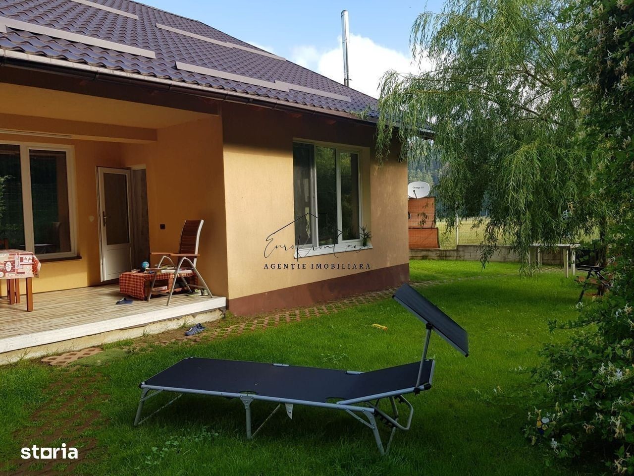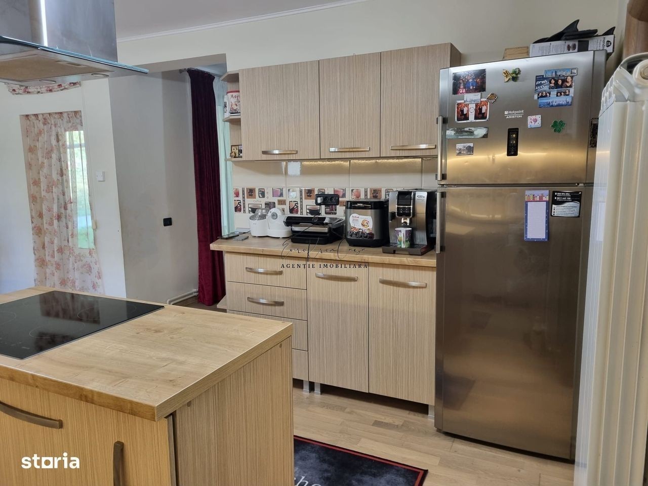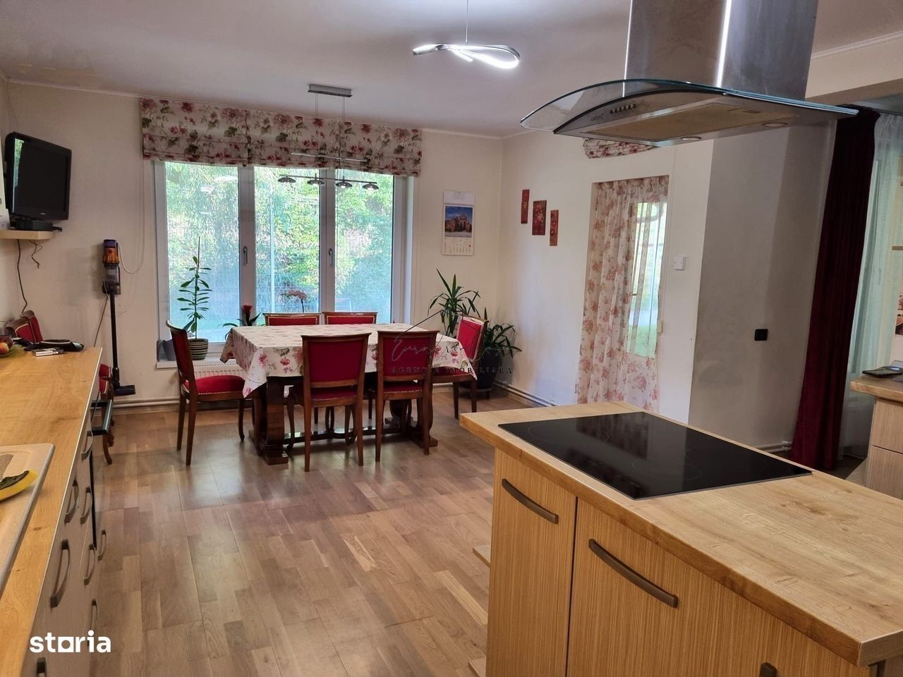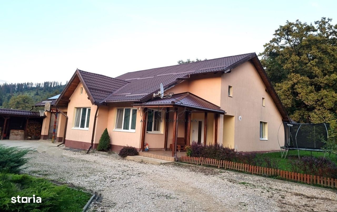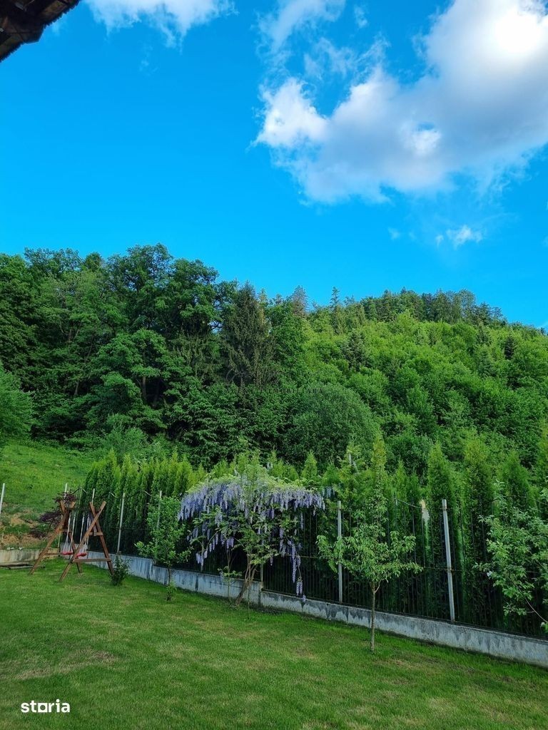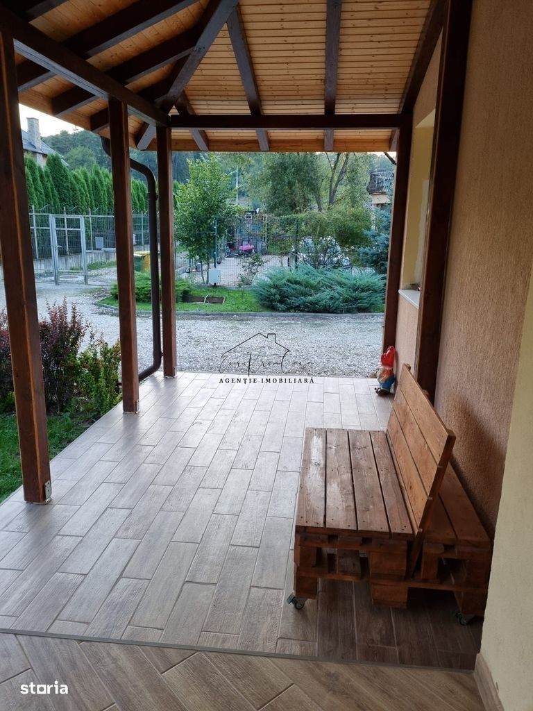 Avem placerea de a va prezenta o casa construita de catre proprietari, într-o zona linistita, langa padure și langa stejarii seculari din Cristian, cu puțini vecini si multă liniste. Loc ideal pentru iubitorii de natura și de liniste, pretabil chiar și pentru o pensiune cocheta. Terenul in valoare totala de 900 mp pe care este construita casa in suprafata utila de 120mp si garajul pentru doua autoturisme in valoare totala de 40mp. Curtea este amenajata, partial cu gazon, pomi fructiferi, zmeură și plante ornamentale (glicina, magnolie, tufe de merisor, trandafiri agatatori pe gardurile de delimitare a proprietații. Pentru copii este un leagan dublu montan în barne de lemn masiv si si o tambulina. Casa este amenajata doar pe parter și este alcatuita din 3 dormitoare (cel mai mic are 12 mp iar master bedroom este de 18 mp, cu dressing direct din dormitor), doua bai, living de 25 mp, bucatarie & loc de luat masa de 28 mp, camara cu intrare din bucatarie, camera tehnica cu acces din casa și din garajul. Casa este conectata la apa -canal si curent electric, (nonofazic si trifazic)incalzirea se efectueaza printr-o centrala cu lemne ( ce se poate transforma si pe curent electric), panouri solare pentru apa calda. Podul este mansardabil, întins pe toată suprafața casei cat si peste garaj. Pe ambele parți ale casei sunt terase acoperite, una spre rasarit (cu ieșire din bucătărie) și una spre sud - vest, fiind intrarea principala în casa. Zona este liniștita, cu posibilitați de plimbari prin padure, drumetii cu bicicleta in mai multe directii: pe drumul forestier pana la Cabana Aviatorilor din Poiana Brasov sau peste deal, direct în Promenada din Rasnov (aprox. 15 min.). PRET : 350.000 euro, negociabil