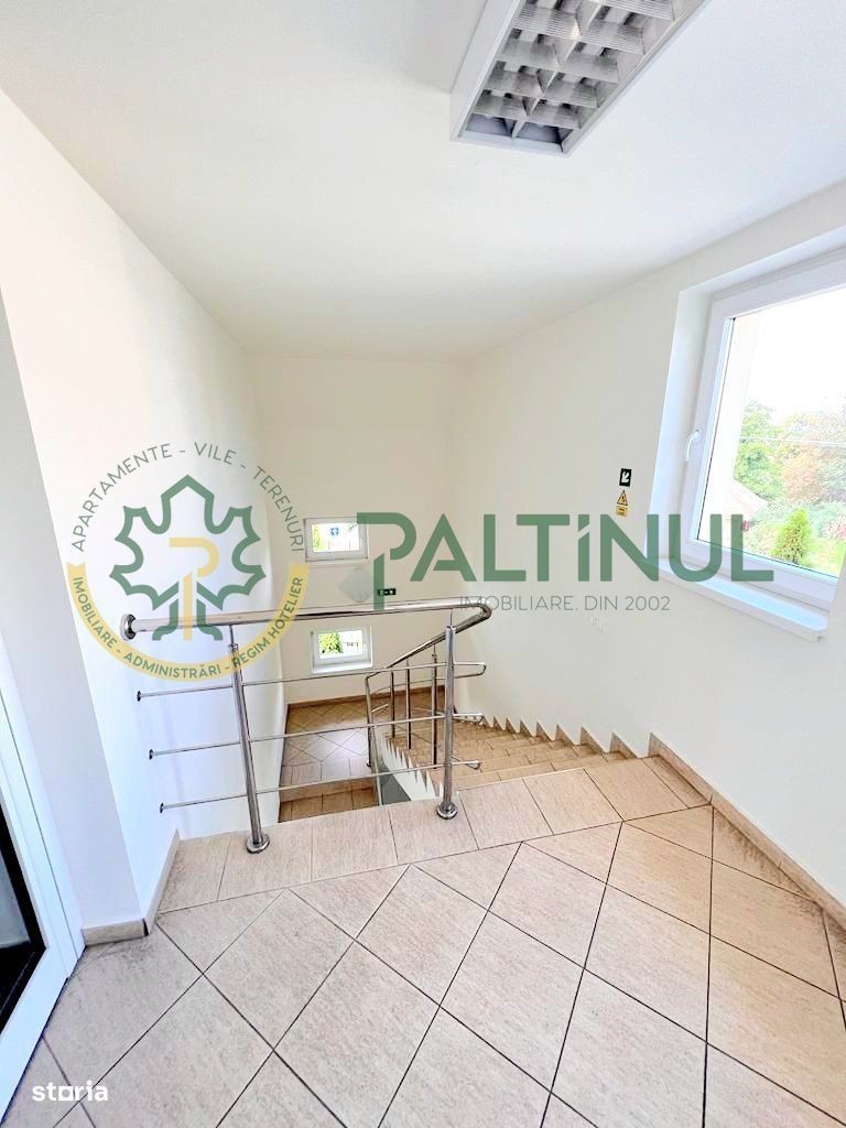 Oferim spre închiriere un imobil ultra-eficient energetic, situat în cartierul Ștrand, una dintre cele mai bine cotate zone din Sibiu. Poziționată aproape de Bulevardul Victoriei, într-o zonă accesibilă și liniștită, această proprietate este ideală pentru companii, cabinete sau activități de tip educațional sau medical. Caracteristici principale: Suprafață utilă: 350 mp Distribuție: demisol, parter, etaj și pod - compartimentare conform releveelor aprobate prin autorizația de construcție din 2008 Curte proprie: 6 locuri de parcare, parcare biciclete, spațiu verde Lift: acces pentru persoane cu dizabilități locomotorii Amplasament: Zona Ștrand - aproape de B-dul Victoriei Stradă asfaltată, iluminată, acces rapid spre centrul orașului Aproape de: spații comerciale, mijloace de transport, zone verzi și instituții publice Dotări și eficiență energetică: Clasificare energetică: A+ - costuri minime cu utilitățile Panouri fotovoltaice 22 kW și pompă de căldură - reduc consumul de gaz la minimum Sistem de control acces și monitorizare video Centrala termică + încălzire electrică la băi și oficiu Lift pentru persoane cu dizabilități la parter Conectivitate și IT: Alimentare electrică de 60 kW Branșamente fibră optică de la doi furnizori Opțional - spațiul poate rămâne complet mobilat: Scaune ergonomice, birouri reglabile pe înălțime Whiteboarduri, televizoare, dulapuri și dulap ignifug Scaun de masaj Detalii administrative: Disponibil din 1 septembrie 2025 Paltinul Imobiliare - 22 de ani de expertiză pe piața imobiliară din Sibiu. Promovăm proprietăți valoroase pentru afaceri de viitor.