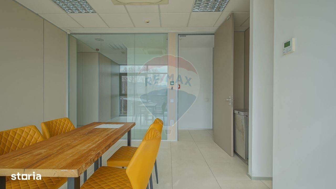 Birouri moderne de închiriat - Un mediu de lucru liniștit și accesibil, aproape de Brașov Keller Logistic, o companie renumită în domeniul logisticii din Ghimbav, îți oferă oportunitatea de a închiria birouri de înaltă calitate, situate într-o clădire modernă, cu facilități premium, destinate atât companiilor care doresc să închirieze pe termen lung, cât și celor care caută un spațiu de coworking flexibil. De ce să alegi birourile noastre? -Spații aerisite și luminoase: Fiecare birou, cu o suprafață între 18 și 20 mp, este gândit pentru a oferi un mediu de lucru confortabil și inspirant, cu aport constant de aer proaspăt. -Conectivitate personalizată: Fiecare birou dispune de infrastructura necesară pentru a te conecta la internet. -Utilitățile sunt incluse: Prețul chiriei acoperă toate utilitățile (energie electrică, apă, încălzire), iar în cazul echipamentelor cu un consum mai mare decât cel uzual (de ex., echipamente IT), oferim soluții de negociere flexibilă. -Siguranță și confort: Paza permanentă a clădirii îți asigură un mediu de lucru sigur. În plus, vei avea acces la o bucătărie comună complet echipată, perfectă pentru pauze și momente de relaxare. -Management complet al clădirii: Ne ocupăm de administrarea imobilului și de întreținerea spațiilor comune, inclusiv curățenia exterioară și a spațiilor comune, pentru a păstra un mediu curat și ordonat. -Spațiu ideal pentru coworking: Birourile sunt perfect adaptabile pentru coworking, astfel încât îți poți personaliza spațiul de lucru în funcție de nevoile echipei tale. -Echipamente moderne și eficiente: Birourile sunt dotate cu echipamente moderne și silențioase, iar fiecare zonă beneficiază de control individual al temperaturii prin sisteme de climatizare (AC). -Încărcare pentru vehicule electrice: În cadrul clădirii, vei avea acces la încărcătoare pentru mașini electrice, pentru a sprijini mobilitatea sustenabilă. -Consumabile incluse: Toate consumabilele (hârtie, gel de curățat, produse de igienă) sunt incluse în prețul chiriei, pentru a-ți oferi confort și un mediu de lucru complet. Locație liniștită, aproape de Brașov Birourile noastre sunt situate într-o zonă liniștită și accesibilă, la doar 15 minute distanță de Brașov, într-o locație care îți oferă confortul unui mediu de lucru calm, departe de agitația urbană. Flexibilitate pentru toate nevoile Indiferent dacă ești o companie în căutarea unui spațiu pe termen lung sau o echipă care preferă un model de coworking flexibil, aceste birouri îți oferă toate facilitățile necesare pentru a-ți susține activitatea zilnică. Prețuri negociabile și condiții de închiriere flexibile sunt disponibile pentru a se adapta nevoilor tale specifice. Comision 0% pentru chiriași și 2% la colaborare pentru restul agentilor din piata. Contactează-ne astăzi pentru a programa o vizionare și a descoperi mai multe despre cum îți putem susține succesul în acest spațiu perfect pentru afacerea ta!
