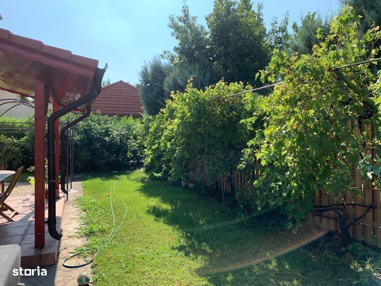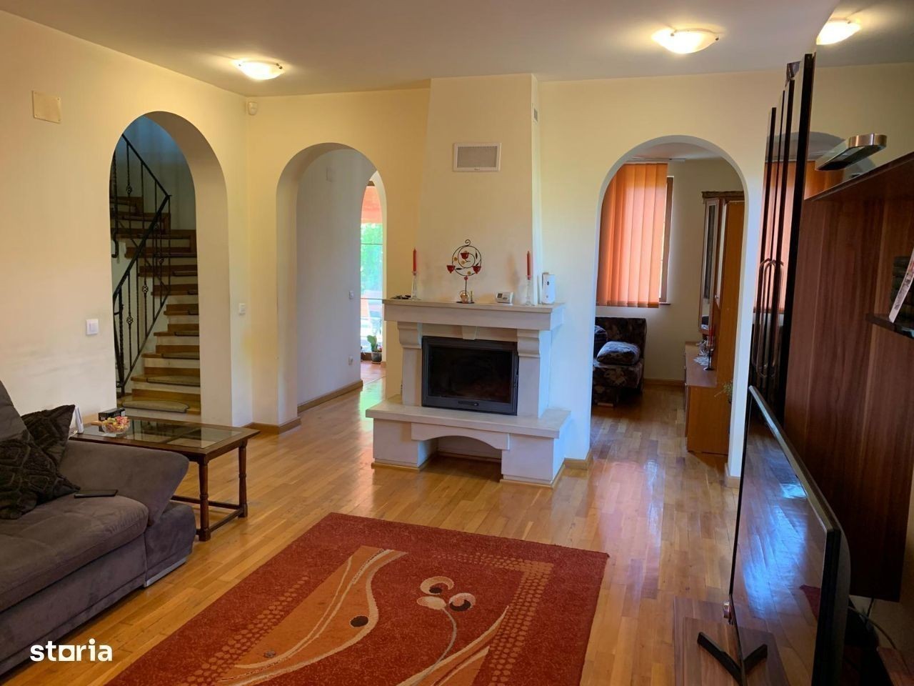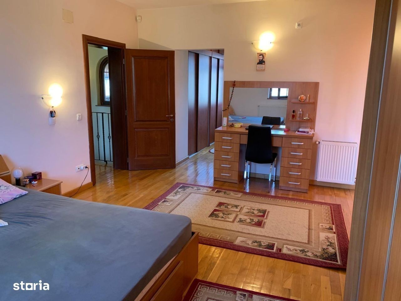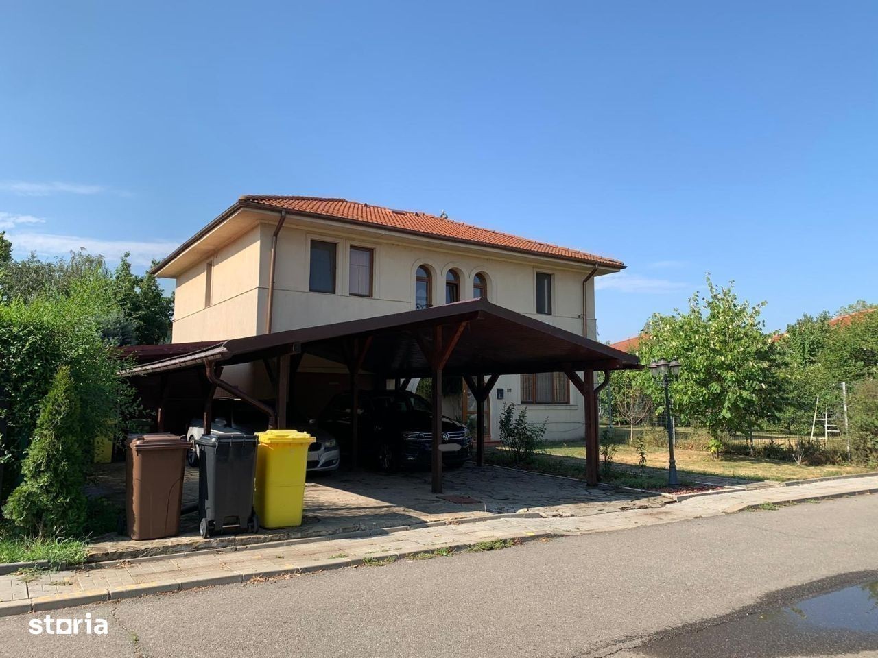 Vilă de vânzare în ansamblul rezidențial Curtea Domneasca, amplasat la aproximativ 4 km de București. Ansamblul este format din 110 vile construite în stil brâncovenesc și beneficiază de pază 24/24h, este racordat la canalizarea ACI Ilfov, iar alimentarea cu apă se face dintr-un put de mare adâncime. In imediata proximitate este o grădinița, piscină si brutărie. Construcția este finalizată in anul 2007, a fost deținuta doar de o singura persoană si locuită de o singură familie. Este construită pe cadre de beton cu cărămidă Porotherm, izolată cu polistiren expandat de 10 cm, parchet din lemn natural și are acoperiș din țiglă Bramac. Construcția dispune de 5 locuri de parcare: 4 locuri acoperite in fața casei si încă un loc acoperit în garajul casei (încalzit). Încălzirea se face cu ajutorul centralei pe gaz prin calorifere, răcirea se face cu ajutorul aparatelor de aer condiționat. La interior aveți parte de un șemineu ce funcționează cu lemne, 2 balcoane acoperite, 1 living, 1 sala de mese, 1 bucătărie, 3 bai (1-parter, 2-etaj), 3 dormitoare, dressing. Podul este accesibil cu ajutorul unei scări retractabile din aluminiu. Casa beneficiază de un generator automatizat pe motorina de 4.5 KWA ce este amplasat in construcția anexă (căsuța lemn). Curtea are o suprafață totala de 913 mp, amprenta casei fiind de 133 mp, astfel rămâne o suprafață neta de curte in suma de 781 mp. Suplimentar față de alimentarea cu apă a cartierului, construcția dispune si de un put propriu, atât pentru casă, cât și pentru gradină (2 pompe).