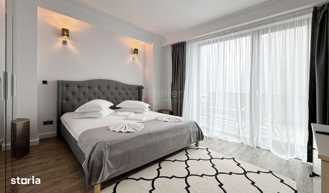 Ati accesat un imobil situat in Poiana Mica. LOCALIZARE: Silver Mountain Resort este un proiect rezidential exclusivist, din Poiana Brasov, fiind amplasat la poalele Masivului Postavaru, in Poiana Mica, la 3,3 km distanta de Partia Bradul, cu o vedere superba catre partiile de schi. DATE TEHNICE: Apartamentul este compus din 4 camere distribuite pe 2 nivele ce comunica prin scara interioara si anume: Primul nivel este compus din: - Hol de acces mobilat si utilat; - Lining-ul este unul spatios, care ofera deschidere catre terasa de 35,38 mp si detine semineu; - Bucatarie open space, mobilata si utilata; - Baia de servici ce deserveste zona de living; - Dormitor cu baie proprie si acces catre terasa; Cel de al doilea nivel este caracterizat de: - Dormitorul matrimonial generos cu acces la terasa proprie si baia proprie; - Dormitor secundar cu acces catre terasa si catre cea de a doua baie; - 2 bai; Ferestrele floor to ceiling si terasele generoase ofera luminozitate dar si o priveliste spectaculoasa, asupra muntelui si padurii. Apartamentul dispune de scara interioara, ce sporeste imaginea unei locuinte spatioase si confortabile. FINISAJE: - Pereti interiori finisati cu vopsea lavabila; - Tamplarie exterioara din profile de aluminium; - Tamplarie interioara cu furnir natural; - Pardoseala din lemn; - Bai din compozit acrilic cu baterii Hansgrohe; - Usa intrare din cadru metalic, cu incuietoare multipunct; - Conexiuni telefon, cablu TV internet; interfon. AVANTAJE: - 1 loc de parcare in garaj inclus in pret - Vedere spectaculoasa, catre padure si catre complex; - Apropierea de trasee montane; - Sali de conferinte, centru SPA (piscina interioara, cada cu hidromasaj, sauna, centru fitness); - Parcare privata, heliport; - Restaurant si club in interiorul Resortului; - Inchirieri Snowmobile, ATV si Off-road Jeeps disponibile in locatie. IMPREJURIMI: Apartamentul este situat intr-o zona de cladiri, cu regim de inaltime P+5 fiind perfect racordat la infrastructura zonei, dumneavoastra beneficiind, astfel, de toate facilitatile necesare: - La 1.7 km de partia Bradul si Telecabina Capra Neagra; - La aproximativ 15km de Piata Sfatului - Brasov; - La 2km de statia de Autobuz. OBSERVATII: Proprietatea se tranzactioneaza in varianta mobilata. Aceasta se poate achizitiona prin credit bancar. Zona rezidentiala de interes major. Oferta include un loc de parcare subteran. Silver Mountain Resort este situat in Poiana Brasov, la poalele Masivului Postavarul, in Poiana Mica, la numai 3,3 km de Partia Bradul. Complexul este format din 4 cladiri de apartamente cu 1 pana la 7 camere, cu terase spatioase si o cladire multifunctionala. Comision Intermediere 2% + TVA