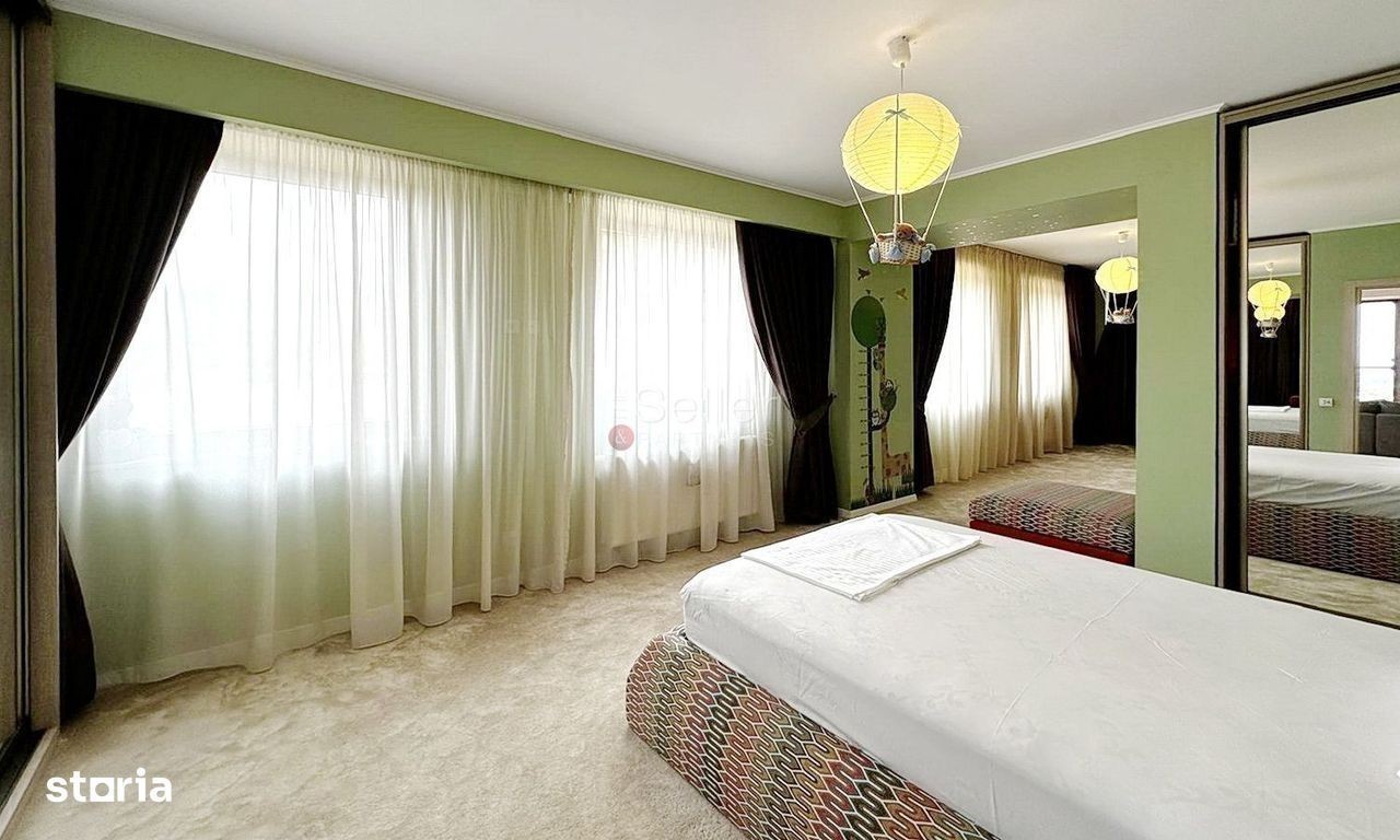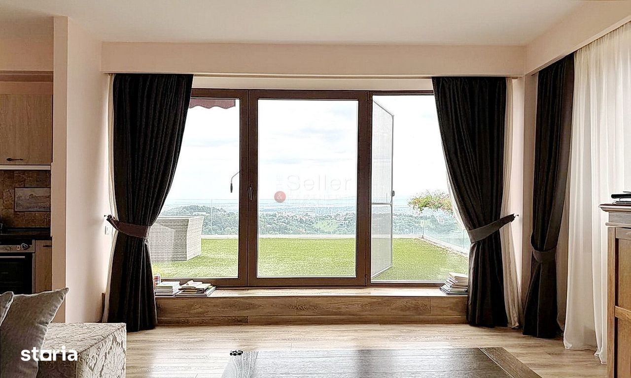 Ati accesat un imobil situat pe Calea Poienii. LOCALIZARE: Imobilul este pozitionat pe Calea Poienii, la jumatatea distantei dintre Brasov si Poiana Brasov, cea mai renumita statiune turistica din Romania. Proprietatea dispune de vedere panoramica si este parte dintr-un complex rezidential, de tip gate comunity, care are in componenta 6 imobile, dispunand de intrare automatizata, cu bariera. COMPARTIMENTARE: Penthouse-ul este structurat pe tot etajul, fiind alcatuit din 4 apartamente cu 2 camere, alipite, totalizand 7 camere, 4 bai, 4 terase, 3 locuri de parcare subterane si o boxa de depozitare. Acesta detine acces exclusiv, pe baza de cartela, cu liftul, din garaj, direct în holul apartamentului si are urmatoarea compartimentare: - Holul de acces spatios, care face legatura intre toate incaperile; - Living-ul, care are o suprafata generoasa, detine suprafata vitrata mare, avand inclusa si zona de luat masa, cu deschidere spre terasa; Aceasta beneficiaza de priveliste aparte spre Tampa, zona Schei si imprejurimi, cu deschidere la terasa, care este complet mobilata si utilata; - Dormitorul matrimonial, mobilat si utilat, are inclusa si baia, amenajata intr-un stil elegant si modern, cu pereti de sticla si suprafata generoasa; - Dormitoarele/ camerele de joaca, beneficiaza de suprafete mari, fiind echipate cu mocheta, gama premium, in culori neutre, pentru a oferi un plus de confort. - Baile sunt complet echipate, acestea nu beneficiaza de aerisire naturala. DOTARI: - tamplarie PVC, cu geam termopan; - usa metalica; - incalzire cu calorifere; - 3 locuri de parcare subterane; - boxa, la subsol Tranzactionarea proprietatii se va face cu mobilierul partial aferent prezentei ofertari. Penthouse-ul se preteaza atat ca investitie, pentru o familie, in stadiul in care este actual, ca apartament unic, cat si recompartimentat, adus la starea initiala, in 4 apartamente de 2 camere, cu bai si bucatarii proprii. IMPREJURIMI: Apartamentul este situat intr-o zona rezidentiala premium, accesul fiind unul facil. Accesul auto, pana la zona de centru a orasului, se poate face in cca. 10 minute. Se accepta achizitionarea prin accesarea unui credit bancar.