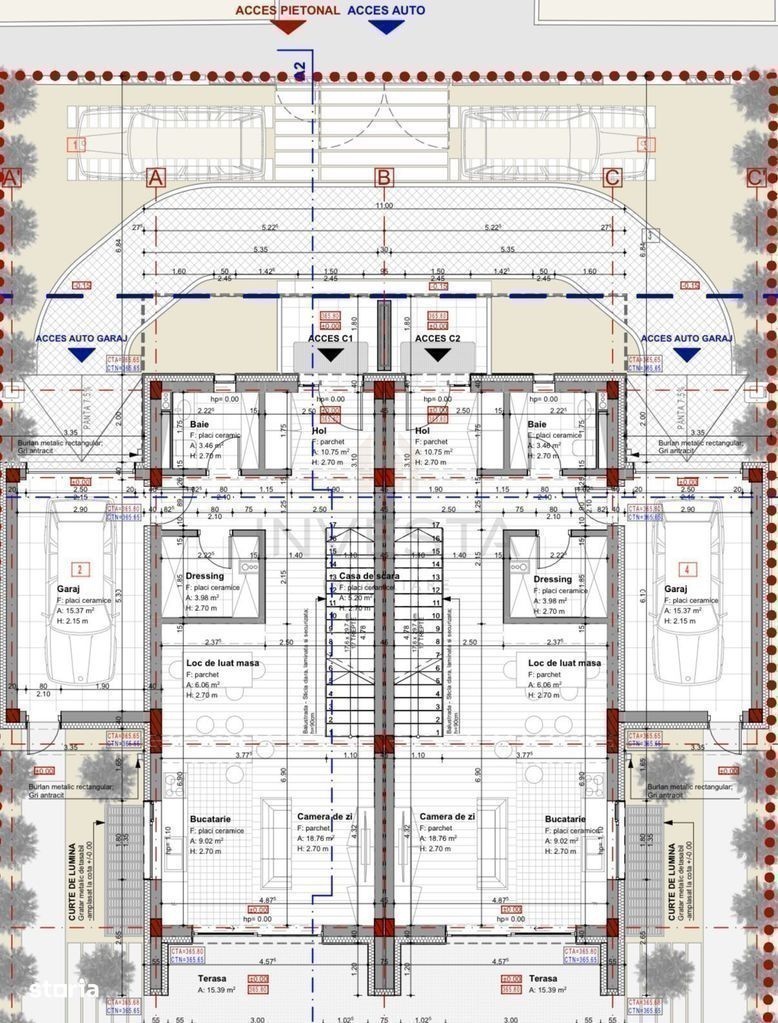 Va prezemtam spre vanzare Vila, situat intr-o zona exclusivista de case din cartierul Gheorgheni, pe o artera secundara in zona strazii Vasile Lupu. Proprietatea beneficiaza de un design inteligent, spatii generoase si o compartimentare optima pentru confort si functionalitate. Datorita pozitionarii, are acces rapid catre Centru, Centre comerciale, scoli, gradinite si alte puncte de interes. Regimul de inaltime este Subsol + Parter + Etaj 1 + Etaj retras, detine o suprafata utila de 226 mp, fiind compartimentat astfel: -Subsol (56 mp): hol de acces, baie, spalatorie si camera tehnica. -Parter (73.75 mp): living spatios open-space cu bucatarie si loc de luat masa, hol, baie, dressing si acces pe terasa de 15 mp, ce duce spre gradina proprie. -Etaj 1: dormitor matrimonial cu dressing si baie proprie, un dormitor secundar, baie separata si hol. -Etaj retras (33 mp): camera multifunctionala (birou, biblioteca sau spatiu de relaxare) cu acces pe o terasa de 34 mp. Dispune si de 1 garaj si 1 loc pentru parcare. Se preda la stadiul semifinisat cu: -Centrala termica proprie -Incalzire in pardoseala -Geamuri termoizolamte din PVC; -Pereti finisati cu glet; -Instalatii sanitare si electrice pe pozitie; -Usa metalica la intrare; La constructia lui se folosesc zidarie din caramida Porotherm de 25 cm, asigurand rezistenta, izolare fonica si confort termic. Exteriorul este finisat cu izolatie din polistiren de 15 cm, optimizand consumul energetic si oferind protectie impotriva variatiilor de temperatura. Aceste materiale garanteaza durabilitate si eficienta pe termen lung. Vila este construita pe un teren de 305 mp, oferind un cadru ideal pentru confort si intimitate. Suprafata construita este optim organizata, iar proprietatea dispune de 233 mp de teren liber, perfect pentru amenajarea unei gradini, a unui spatiu de relaxare sau a unei zone de joaca. Aceasta curte privata adauga un plus de valoare si functionalitate locuintei, oferind multiple posibilitati de utilizare. Proprietatea se vinde de pe firma, in cazul persoanelor fizice la pret se adauga TVA! Ca modalitate de plata se poate achiztiona si prin credit, avansul minim accepta fiind de 35%. Pentru mai multe detalii sau pentru a programa o vizionare, nu ezitati sa ne contactati. Aceasta proprietate reprezinta o oportunitate unica de a va bucura de confort, spatiu si locatie premium in Cluj-Napoca. Va asteptam cu drag sa descoperiti potentialul acestei case!