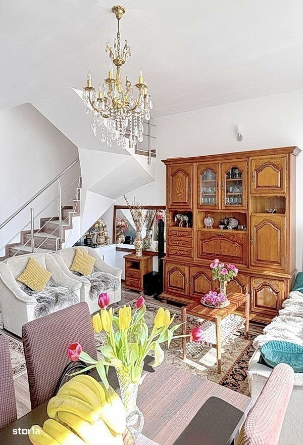 LOCALIZARE: Acest imobil este situat in Ghimbav cartierul Florilor, intr-o vila cu 4 apartamente, in imediata apropiere a supermarketului Mega Image. COMPARTIMENTARE: Parter: - Zona de zi, care are o suprafata generoasa si deschidere la terasa; - Bucataria, de tip open space fiind mobilata si dotata; - Baia 1, fiind dotata cu dus si cu aerisire naturala. Etajul 1: - Dormitorul 1, cu o suprafata generoasa; - Dormitorul 2, care beneficiaza de priveliste aparte; - Baia 1, fiind dotata cu dus si cu aerisire naturala. Etajul 2: - Dormitorul 3, cu o suprafata generoasa, detine dressing. DOTARI: - centrala termica; - tamplarie PVC, cu geam termopan; - curte 100 mp; - loc de parcare suprateran. Tranzactionarea proprietatii se va face in varianta partial mobilata. IMPREJURIMI: Imobilul este situat intr-o zona de vile, accesul auto, pana zona de centru a orasului, facandu-se in cca. 18 minute. ATRACTII ZONA: Sala de sport Ghimbav. ACCESIBILITATE: Transport public în apropiere, la aproximativ 400 m. FORMA ACHIZITIONARE: Se accepta plata prin accesare credit. NOTA: Informatiile prezentate reflecta situatia reala a proprietatii, fara a constitui o oferta contractuala. Aceste date au fost obtinute verbal, de la titularul de drept al imobilului. Structura acestei prezentari nu poate fi reprodusa, fara acordul scris al The Seller and Partners.