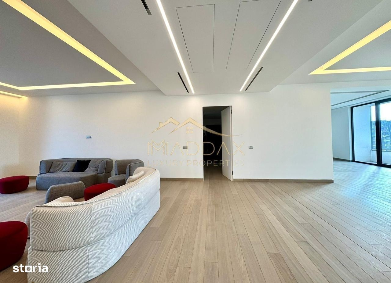 Maddax te invită să descoperi acest apartament elegant, conceput pentru a satisface cele mai rafinate gusturi. Cu o suprafață generoasă de 268mp, apartamentul dispune de 4 camere, incluzând 3 dormitoare sofisticate, fiecare având baie proprie, asigurând astfel intimitate și confort maxim pentru toți locatarii. Finisajele de calitate premium se regăsesc în fiecare detaliu, iar sistemul de încălzire în pardoseală adaugă un plus de confort, menținând o temperatură plăcută în întreaga locuință. Spațiile sunt gândite pentru a oferi un ambient luminos și aerisit, iar designul interior îmbină armonios eleganța cu funcționalitatea. Apartamentul beneficiază de multiple căi de acces, facilitând astfel deplasarea rapidă și comodă. Situat în zona exclusivistă Kiseleff, acesta se află în inima societății, oferind acces la cele mai bune restaurante, cafenele și centre de recreere. Această proprietate unică reprezintă o oportunitate rară pentru cei care doresc să trăiască într-un spațiu elegant și sofisticat, unde confortul și stilul de viață rafinat se îmbină perfect. O adevărată bijuterie pe piața imobiliară, gata să devină acasă pentru cei care apreciază calitatea și excelența. Doua locuri de parcare sunt alocate acestui apartament in subteranul imobilului incluse in preț. Pentru mai multe detalii, sunt aici pentru tine.