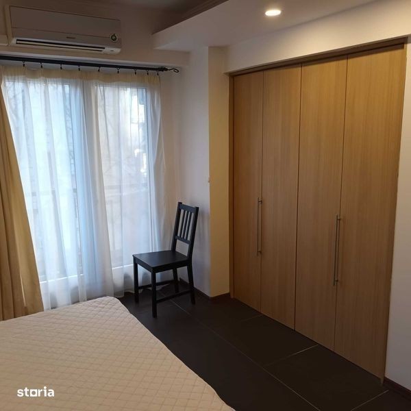 Apartament 2 camere, open space, cu 2 grupuri sanitare, 2 AC, iluminare totala LED, recent renovat, situat la etajul 2/7 intr-un bloc tip monolit din 1993, cu supraveghere video. Supafata utila este de 63mp. Este situat intre Camera de Comert si Timpuri Noi, la 3 min. de statia de metrou. Apartamentul are suprafete generoase si un balcon lung pe toata lungimea apartamentului, cu iesire din fiecare camera. Dormitorul este prevazut cu dressing mare si grup sanitar propriu.De asemenea, cele 2 bai beneficiza suplimentar de apa calda de la boiler pentru situatiile neprevazute. Apartamentul este la inchiriere direct de la proprietar si se inchiriaza cu contract. Nu se accepta animale de companie.