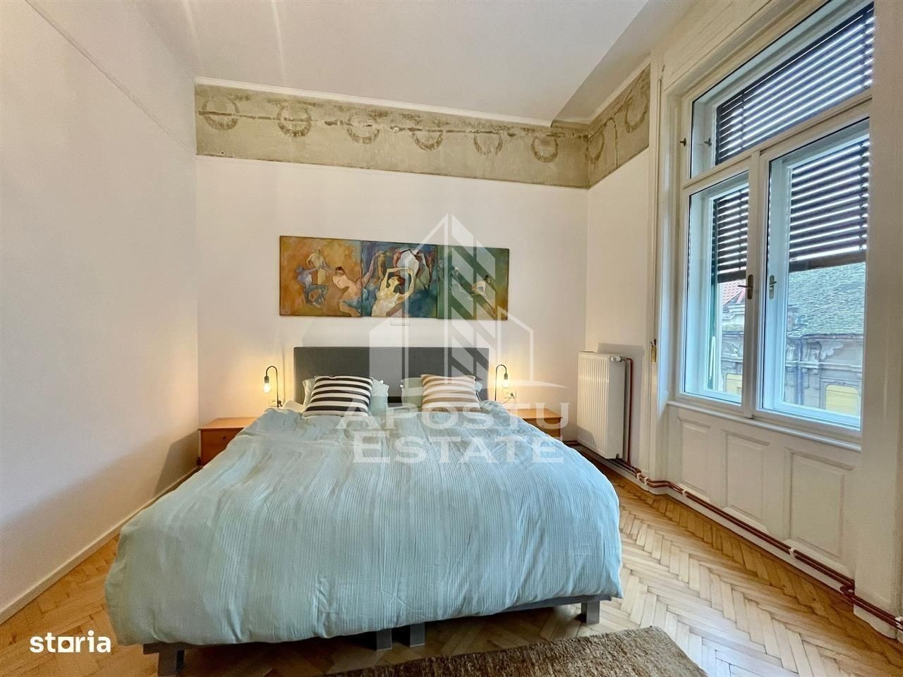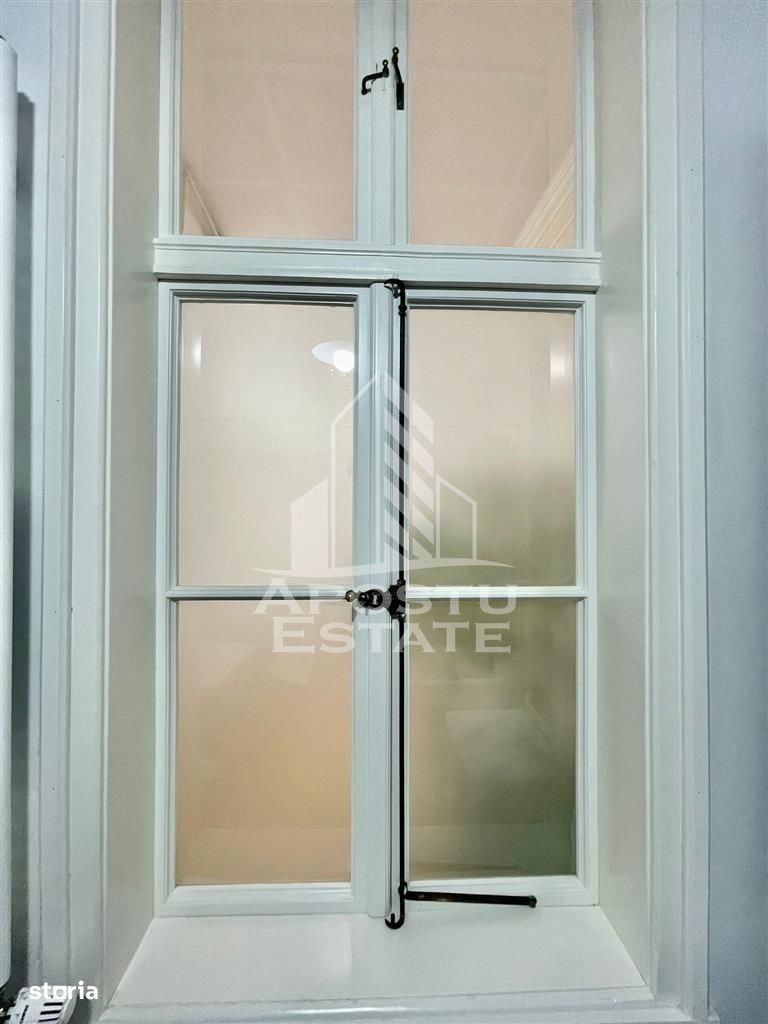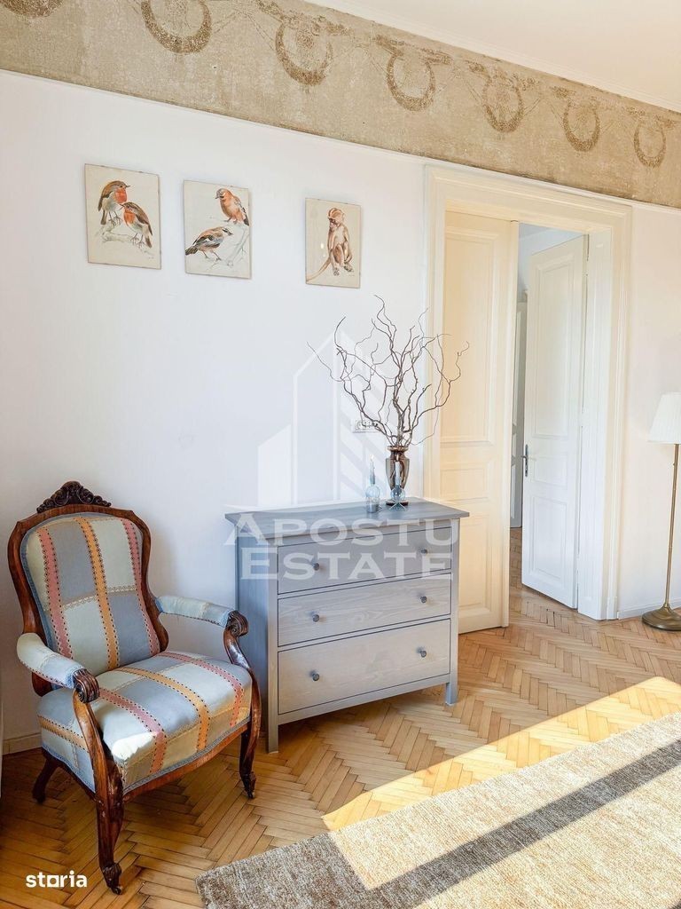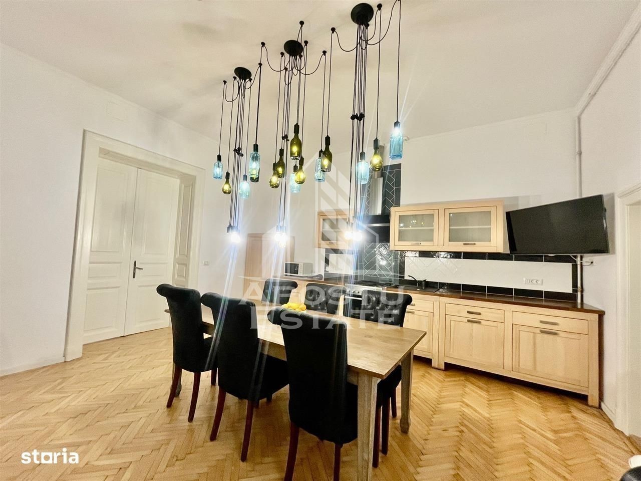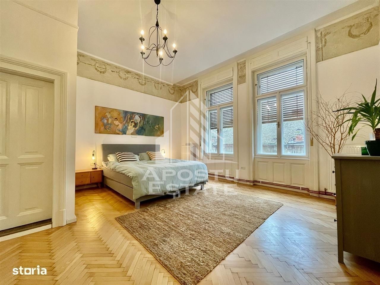 APOSTU ESTATE va propune spre inchiriere un apartament foarte spatios cu 4 camere 3 bai confort 1 sporit circular situat la etajul 2/2 intr-o cladire istorica mai exact Palatul Jakab Klein zona Elisabetin. Confortul termic se realizeaza prin intermediul centralei pe gaz si al aerului conditionat. Imobilul se intinde pe o suprafata utila de 145mp si este compartimentat astfel: - hol de acces - bucatarie - living - 2 dormitoare - birou - 3 bai - dressing Vecinatati: - Profi - Pizza La Maria - Riviere Brasserie - Teatrul Merlin - Piata Badea Cârțan - Liceul Teoretic Bartok Bela - Nokia Business Center - Universitatea de Medicina si Farmacie Victor Babes - Catedrala Mitropolitana Ortodoxa - Mijloace de transport in comun Garantia este 2 luni de chirie. Se accepta animale de companie! Va asteptam cu drag la o vizionare! ID intern: 12757