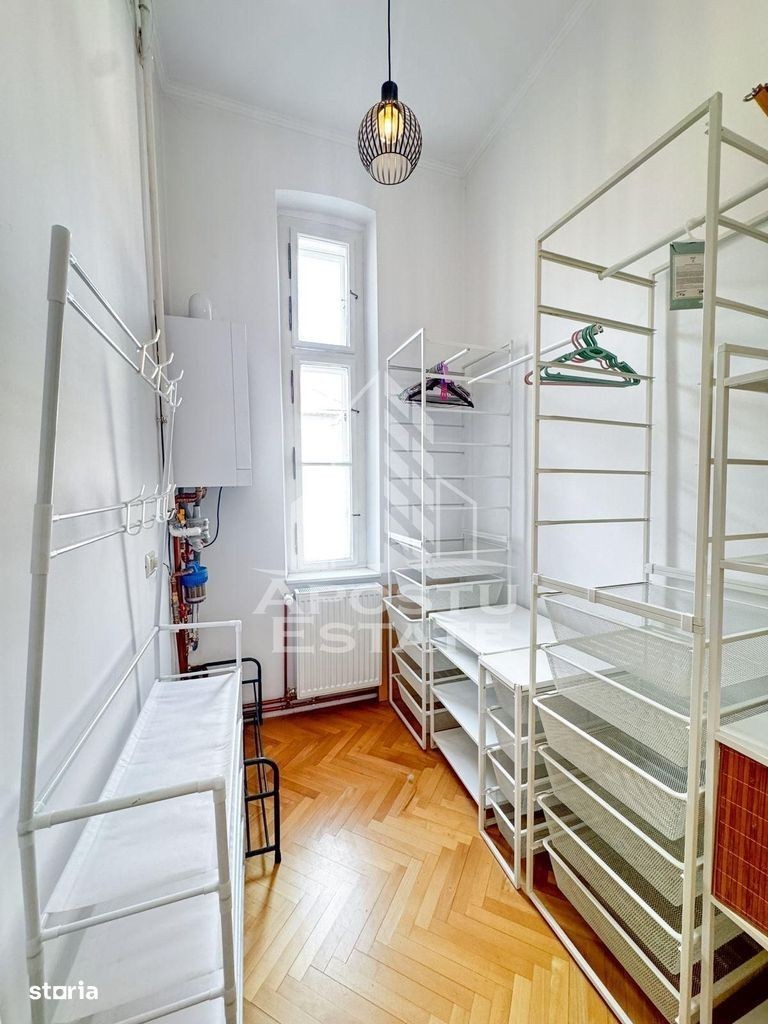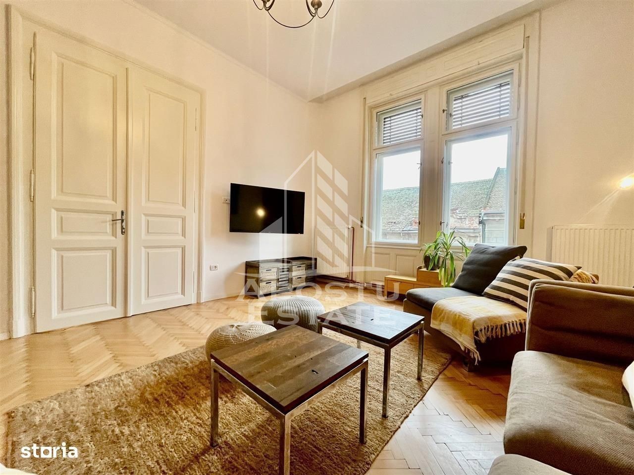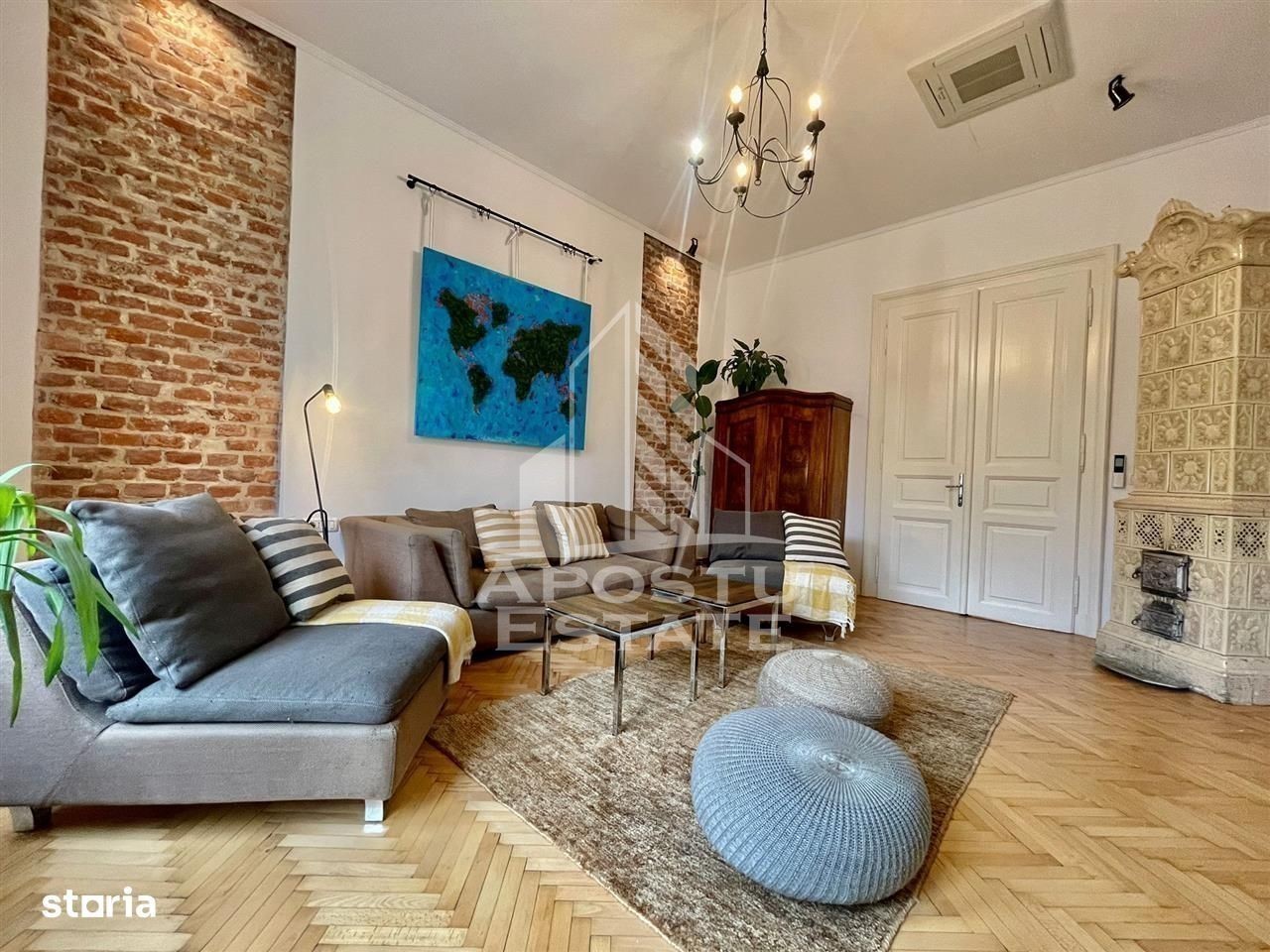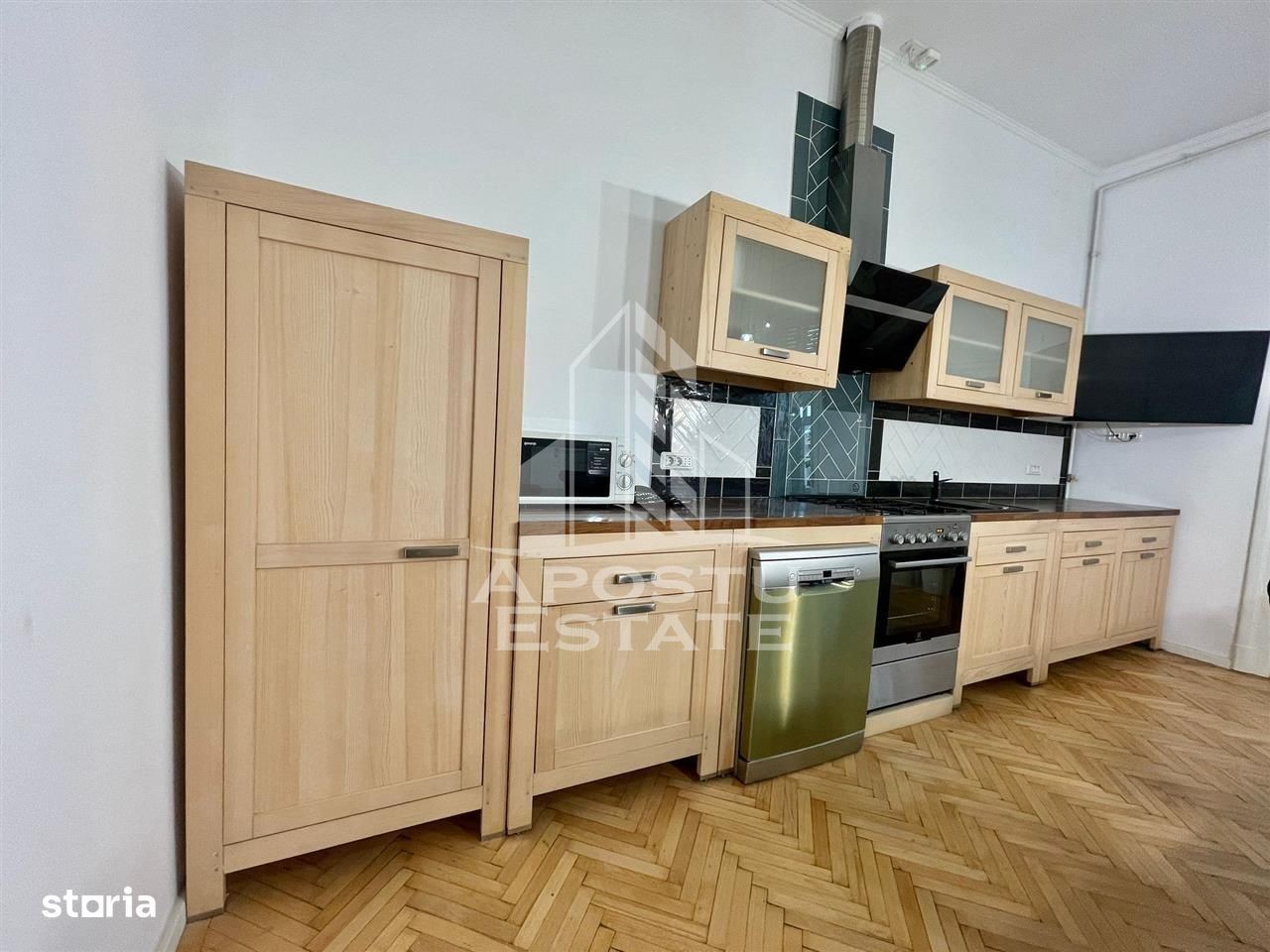 APOSTU ESTATE va propune spre inchiriere un apartament foarte spatios cu 4 camere 3 bai confort 1 sporit circular situat la etajul 2/2 intr-o cladire istorica mai exact Palatul Jakab Klein zona Elisabetin. Confortul termic se realizeaza prin intermediul centralei pe gaz si al aerului conditionat. Imobilul se intinde pe o suprafata utila de 145mp si este compartimentat astfel: - hol de acces - bucatarie - living - 2 dormitoare - birou - 3 bai - dressing Vecinatati: - Profi - Pizza La Maria - Riviere Brasserie - Teatrul Merlin - Piata Badea Cârțan - Liceul Teoretic Bartok Bela - Nokia Business Center - Universitatea de Medicina si Farmacie Victor Babes - Catedrala Mitropolitana Ortodoxa - Mijloace de transport in comun Garantia este 2 luni de chirie. Se accepta animale de companie! Va asteptam cu drag la o vizionare! ID intern: 12757