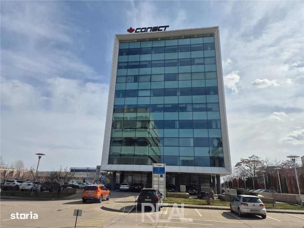 Spatii de birouri de inchiriat in cladirea Conect 3, zona Pipera, Bulevardul Dimitrie Pompei, Sector 2, Bucuresti. Imobilul este incadrat la clasa A, este dispus pe S+P+5E+E Tehnic si face parte din complexul Conect Business Park. Proiectul este situat in zona de Nord a Bucurestiului, in apropiere de strazile Fabrica de Glucoza și bulevardul Barbu Vacarescu, la doar cateva minute de statia de metrou Pipera si dispune de o suprafata totala inchiriabila de aproximativ 5686 de m2. In incinta imobilului exista o sala de meeting spatioasa, ce poate fi inchiriata pentru intalniri si evenimente speciale. In clipa de fata la parter functioneaza un resturant tip autoservire, elegant si cu meniu diversificat și o curățătorie ecologica. Cladirea dispune si de 500 locuri de parcare, in parcare subterana sau in curte, ce pot fi inchiriate contra cost. Centrul de afaceri beneficiaza de facilitati specifice clasei A şi A+: faţadă din sticlă cu perete cortina la exterior; tavan casetat cu corpuri de iluminat incorporate; sisteme moderne de incalzire si racire realizate printr-un sistem de ventilatoare montate în tavan cu sistem HVAC în 4 tevi; echipament BMS (Building Management System) - sistem de monitorizare centralizata a cladirii care duce la optimizarea costurilor de consum şi întreţinere; aport de aer proaspat; pardoseala flotanta; mocheta antistatica; retea data-voice; instalatie de detectare si prevenire a incendiului; receptie laparterul cladirilor; supraveghere cu camere video; paza permanenta a cladirilor si a parcarii; parcare generoasa. Daca doriti sa inchiriati un birou in una dintre cladirile ce fac parte din complexul Conect Business Park, sunati pentru disponibilitati si o vizionare!
