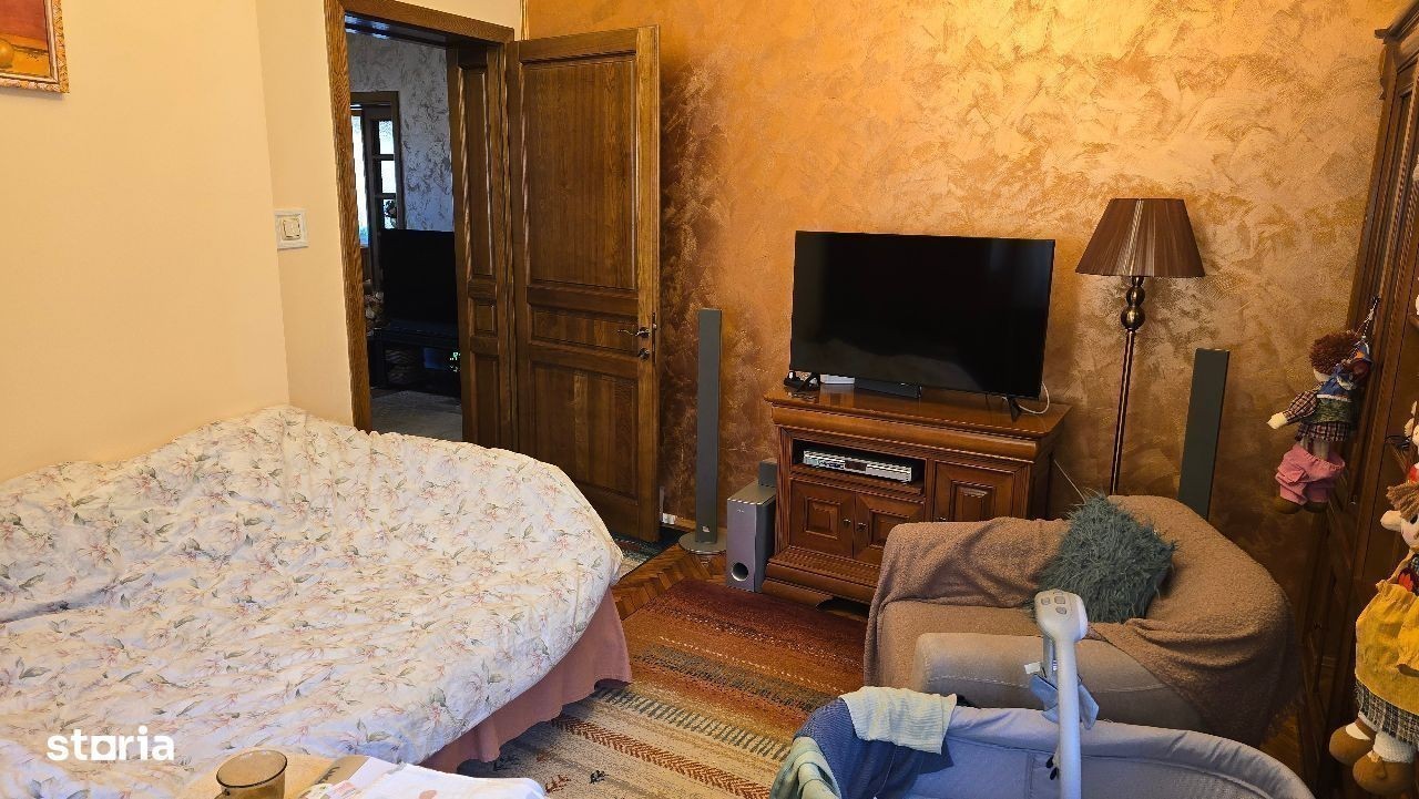 Vand apartament 4 camere decomandat in Deva, zona ultracentrala (la 2 minute de Primarie), etaj 1, suprafata utila 108 mp + terasa de 30 mp + boxa de aproximativ 20 mp (amenajata CRAMA), bloc de caramida de 2 nivele izolat exterior acoperit cu pod si tigla, usa la intrare si usi interioare din lemn masiv facute pe comanda, instalatia electrica pe cupru, instalatii sanitare si termice schimbate, centrala termica pe gaz, semineu si sobe de teracota functionale si ornamentale, tamplarie PVC cu geam termopan tripan, gresie, faianta, parchet de stejar, 2 bai, terasa de 30 mp deschisa si acoperita, amenajat modern si de calitate, partial mobilat si utilat. Apartamentul este situat intr-o curte privata la aproximativ 400 metri de Primaria din Deva. Pret: 160 000 euro neg. Tel: