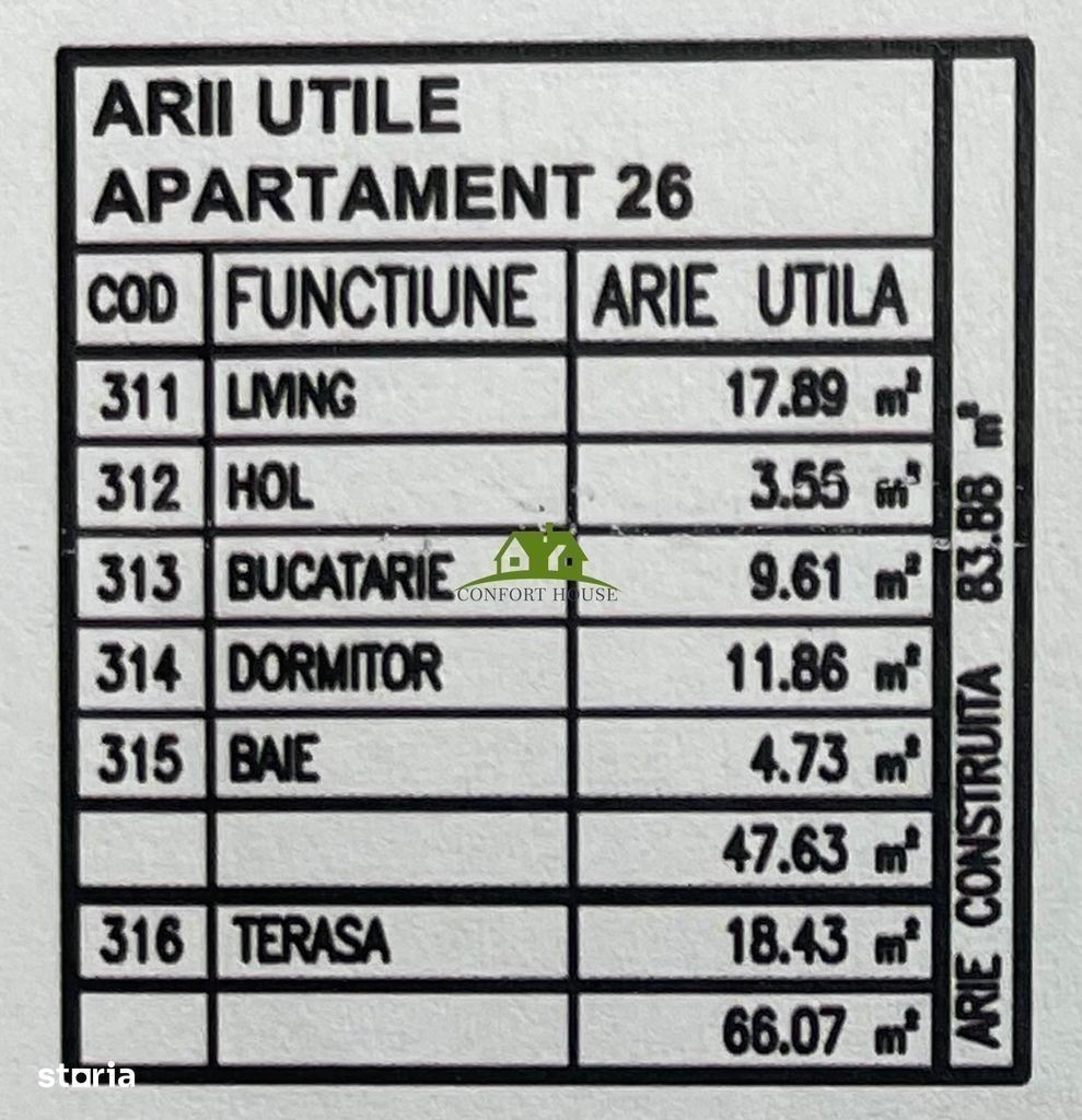 Prezentam Apartament 2 camere, bloc nou, P+3, Ap.26, Et.3, Bl.3 Arie construita 83.88 mp / arie utila 66.07 mp Pret 75 mii euro (tva inclus) Locul de parcare subteran (acoperit) se vinde separat cu 10 mii euro. Locul de parcare suprateran (descoperit) se vinde separat cu 5 mii euro. Descoperiți o nouă dimensiune a confortului urban! Va invitam sa vizionati un nou ansamblu rezidential aflat in constructie pe str. Ostroveni, în cea mai dezvoltata zona a orasului Rm.Vâlcea. Proiectul este compus din 7 cladiri cu regim de înaltime P+3 pentru a va oferi un stil de viata modern si confortabil. Detalii ansamblu: - cladiri realizate pe cadre din beton, ziduri din caramida phorotherm de 30cm si izolatie termica eficientă cu polistiren de 10cm. - peste et. 3 este placa turnata, izolatie termica, fonica si acoperis Lindab Disponibilitate: - garsoniere, apartamente cu 2 și 3 camere, ideale pentru familii sau pentru investiții. - locuri de parcare supraterane (5.000 euro) și subterane (10.000 euro) - opțiuni sigure pentru automobilul dvs. Securitate si Confort: - ansamblu imprejmuit cu gard, zone de acces cu bariere și deschidere prin telecomandă pentru un mediu de locuit sigur. - amenajare cu spații verzi și un loc de joacă privat pentru copii, ideale pentru relaxare și distracție. Beneficii incluse în pret: - centrala proprie pentru fiecare apartament, termopane de calitate superioara, ușa metalica la intrare și uși mdf la interior. - finisajele sunt realizate cu materiale importate din Italia, incluzând gresie, parchet, faianta și corpuri sanitare moderne în baie. Avantaje: - proximitate cu Bdul Dem Rădulescu - acces la marketuri, restaurante, zona de promenada, școli și gradinițe, banci, farmacii. - mijloace de transport în comun. Pentru mai multe detalii sau pentru programarea unei vizionari, contactati cu incredere reprezentantul nostru. Reprezentant direct dezvoltator, fara comision ! Oferim consiliere si procesare pt.documentele notariale si facilitati pentru credite ipotecare in conditii avantajoase !