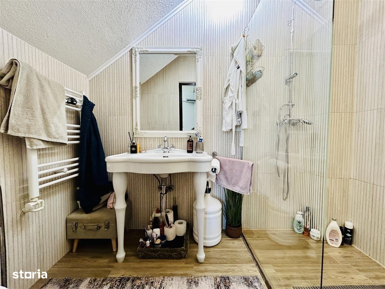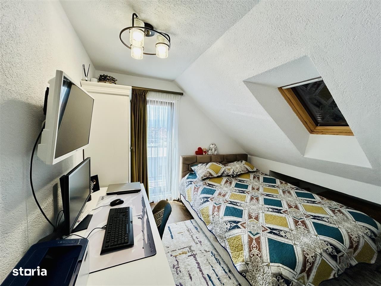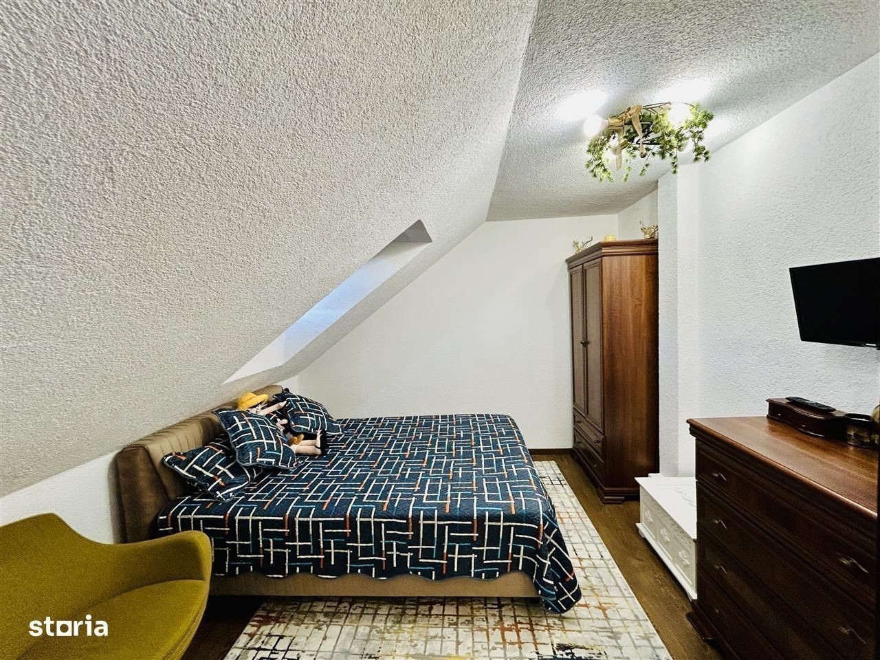 Vă propunem spre vanzare un apartament cu 3 camere, mobilat si utilat modern, situat intr-o zona usor accesibila, in Terezian, cu acces facil catre multe puncte de interes. Apartamentul este de tip mansardă, a fost construit din BCA si este bine izolat fonic si termic. Cel de-al doilea nivel al locuintei este intabulat. Avantaje apartament de vanzare in Sibiu - Zona buna - In aproapiere de scoli, gradinite, centre comerciale, institutii bancare - Ideal pentru investitie, zona cautata pentru inchiriat - 2 grupuri sanitare - Aer conditionat - Mobilat si utilat modern - Finisaje si mobila de calitate - Recent renovat - Caile de acces sunt complet asfaltate si iluminate - Balcon - Suprafata utila mare Acest apartament de vanzare este situat la etajul 5 al unui bloc cu 5 etaje și are o suprafață utilă de 98 mp. Separat de acest spațiu, mai are un balcon de aproximativ 7 mp. Locuinta este dispusa pe 2 niveluri. La primul nivel se regăsește un hol unde au fost amenajate spații de depozitare, living cu bucătărie de tip open space, un dormitor, un grup sanitar. La nivelul 2 se regăsesc două dormitoare și o toaletă de serviciu. Imobilul a fost complet renovat, este mobilat si utilat modern cu finisaje si mobilier de calitate si este varianta perfecta pentru o familie care cauta un apartament spatios si eficient compartimentat. ID intern: 20877