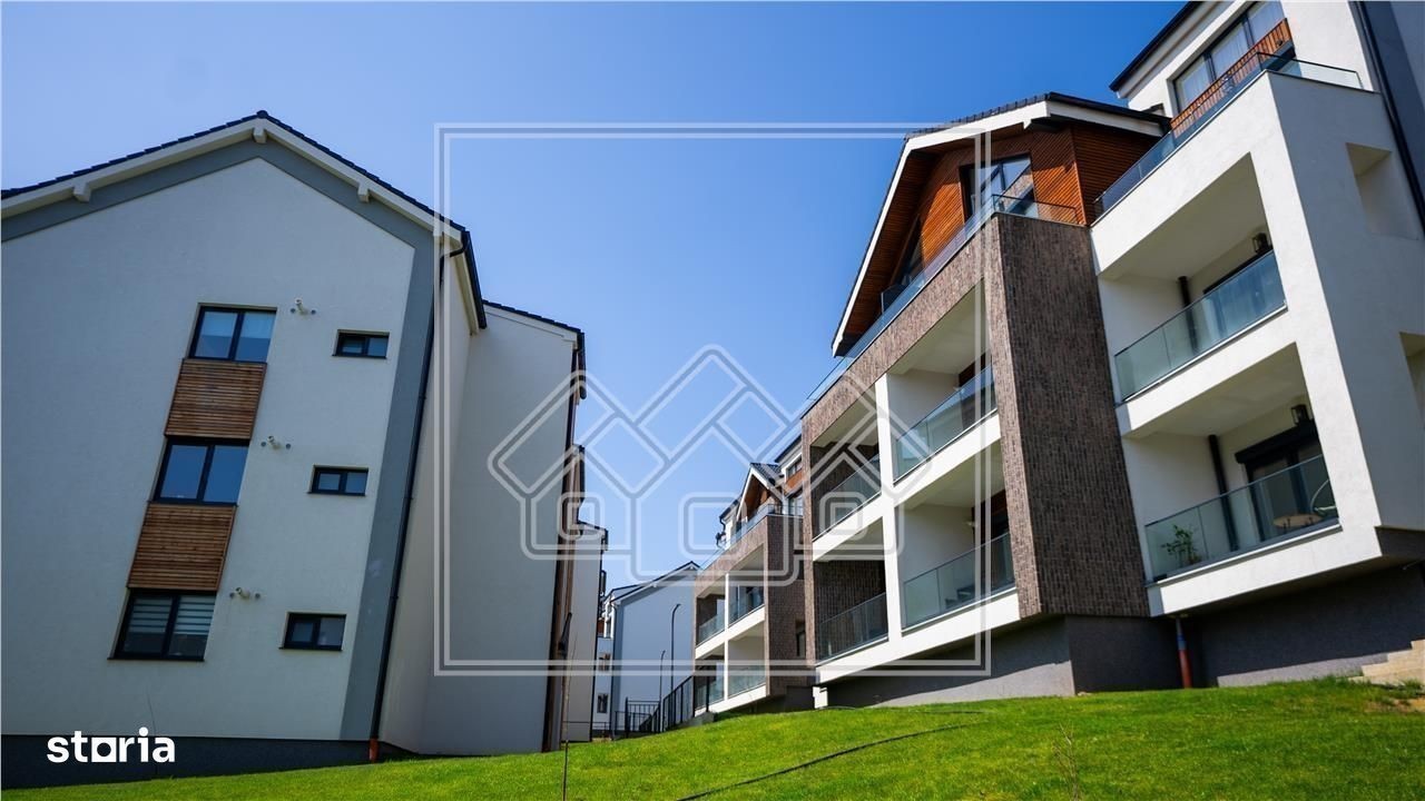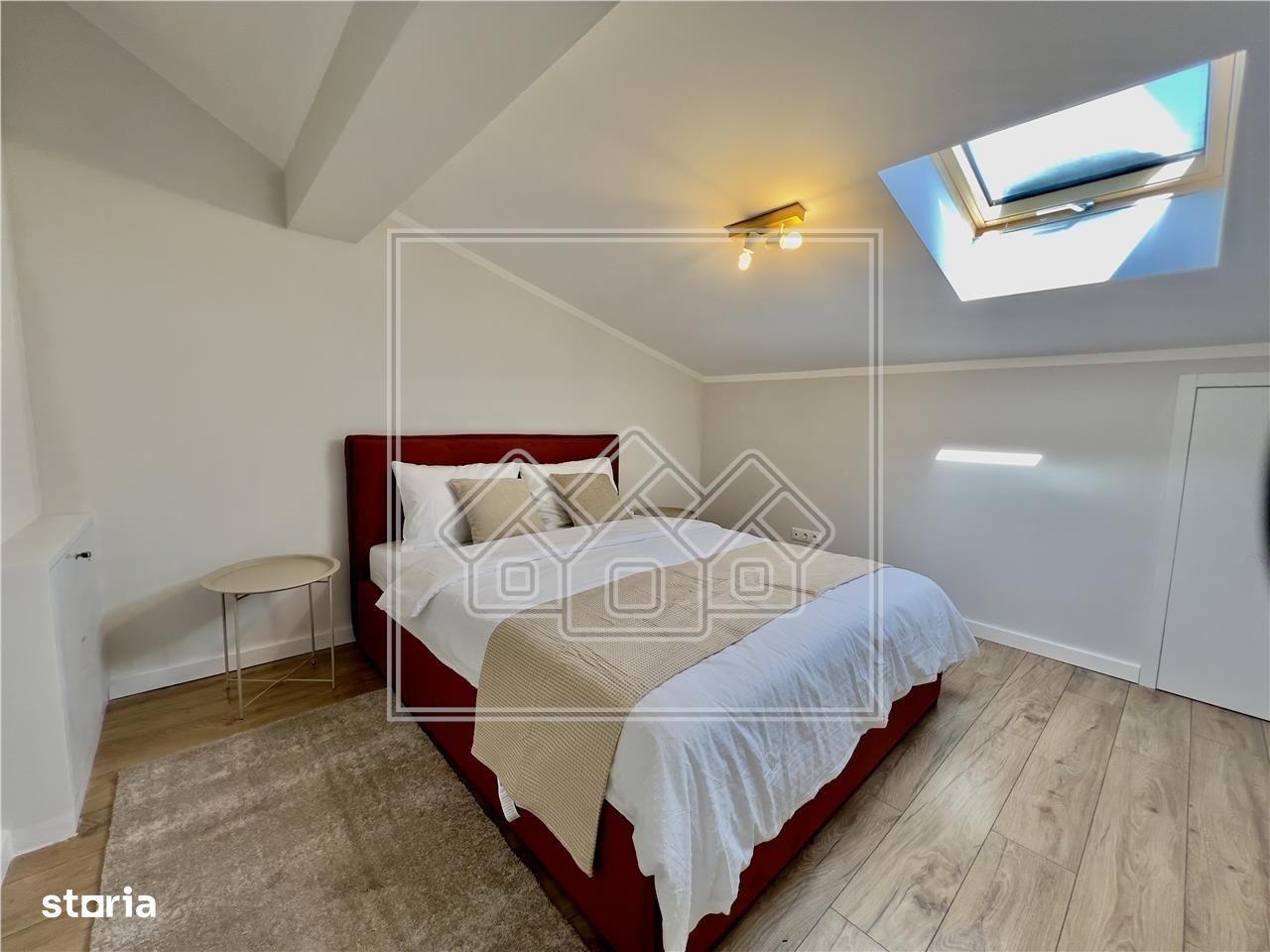 Penthouse de vanzare cu 4 camere - complet mobilat si utilat - INTABULAT, disponibil imediat! De vanzare penthouse pe 2 niveluri, nou, nelocuit, in Cristian, la doar 15 minute cu masina de centrul orasului Sibiu.