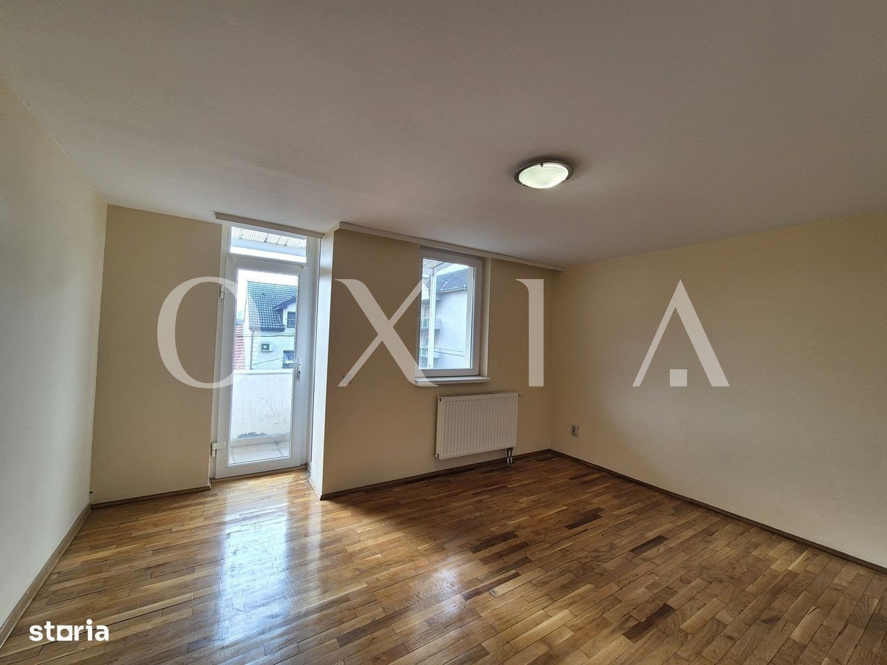 OXIA prezinta spre inchiriere un spatiu de birou situat in Timisoara, zona Complexul Studentesc, pe strada Inginer Anghel Saligny, in proximitatea strazii Cluj, intr-o vila D+P+2E din 2005, la etajul 2, avand o suprafata de 90 mp utili plus o terasa generoasa de 35 mp. Compartimentarea include un hol de acces, doua incaperi decomandate,living generos open space cu bucataria, baie cu cabina de dus si o baie de servici. Confortul termic este asigurat prin centrala proprie pe gaz cu incalzire in calorifere si sistem de climatizare. Spatiul se preda partial mobilat, conform prezentarii si este pretabil pentru diverse activitati de birou. Se poate recompartimenta in regim propriu dupa nevoile fiecarui client. Pretul de inchiriere este de 690 Euro + garantie (o luna) + comisionul agentiei. Pentru informatii suplimentare sau pentru a programa o vizionare, va rugam sa ne contactati la numarul de telefon
