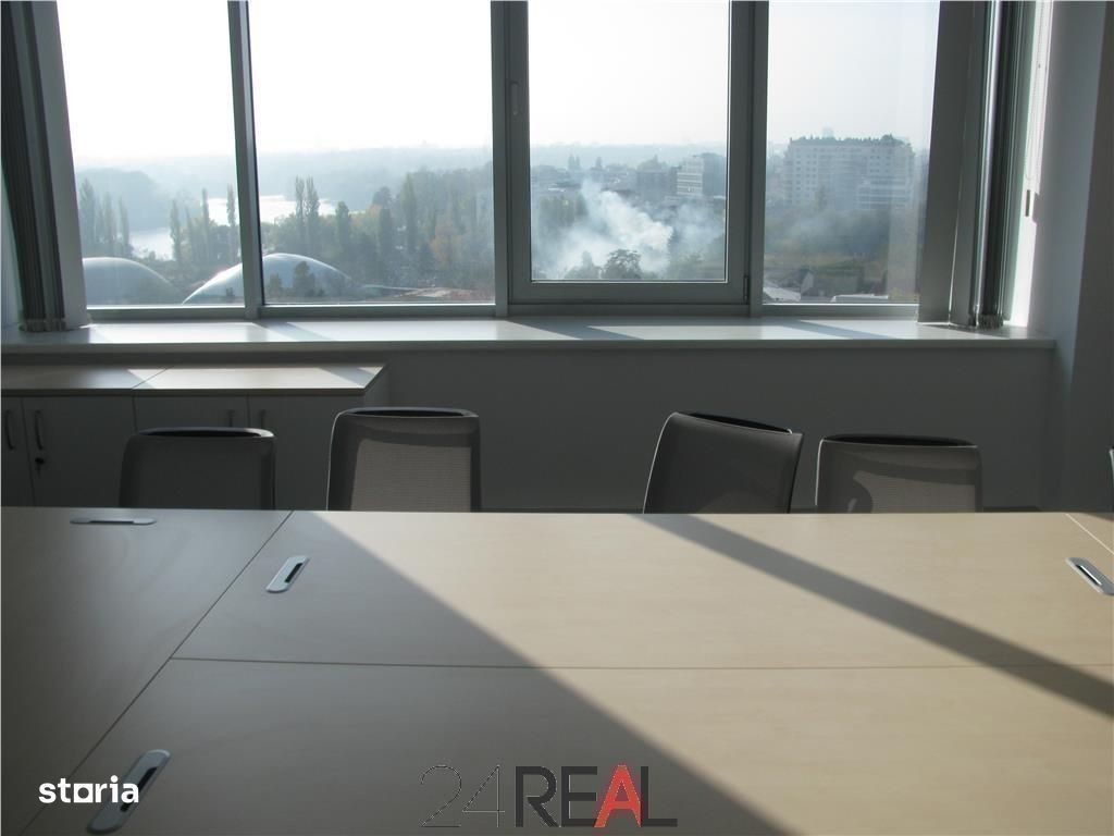 Spatiu de birouri - inchiriere - in cladire de birouri, clasa Superioara, in zona Aviatiei, Metrou Aurel Vlaicu, sector 1, Bucuresti, cu urmatoarele dotari si finisaje: structura metal, beton, perete lavabil, inaltime spatiu 2.7 m, plansee tavan casetat, beton armat, mocheta. Dotari tehnice: cablare voce-date, prize voce-date, senzor incendii, parcare sistematizata, fatada de sticla, telefon, internet. Servicii disponibile in cladire: acces cartela magnetica, supraveghere video, receptie, administratie, paza. Etaj 13 - 517 mp inchiriabili - disponibil imediat
