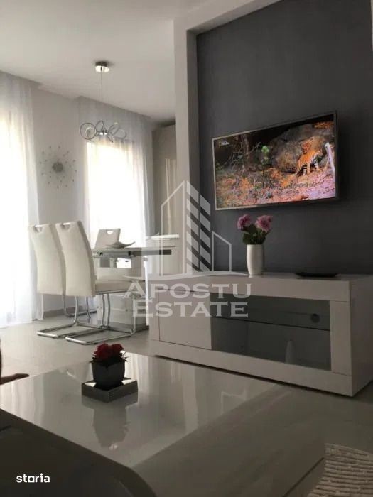 APOSTU ESTATE va propune spre inchiriere un apartament cu 2 camere,centrala proprie, clima, amenajat modern, zona Dumbravita Apartamentul se intinde pe o suprafata de 50mp si este compartimentat astfel: -Hol acces -Sufragerie luminoasa -Bucatarie mobilata si utilata -Dormitor generos -Baie dotata cu cabina de dus -Balcon spatios 14mp Confortul termic este asigurat de centrala proprie pe gaz. Facilitati: -Centrala proprie -SmartTV Se inchireaza doar pe termen lung ( minim 12 luni de zile) Apartamentul poate fi ocupat imediat si se percepe o garantie egală cu valoarea chiriei! Va invitam cu drag sa programati o vizionare pentru a aprecia personal toate facilitatile si avantajele acestui apartament. Id intern: CP1895972