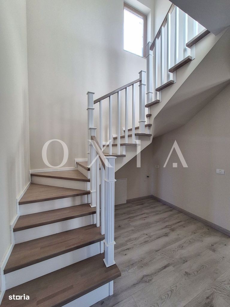 OXIA prezinta spre vanzare unitate in imobil tip duplex, unit prin Garaj, situat in Giroc, aproape de Primarie, cu suprafata terenului de 300 mp, suprafata construita de 146 mp (amprenta casei la sol este de aproximativ 90 mp), suprafata utila de 122 mp + 14 mp terasa acoperita + garaj de 19 mp, compartimentata astfel: PARTER: Hol acces Living cu bucatarie open space Dormitor/birou Baie cu cabina de dus Terasa acoperita Garaj ETAJ: Hol 3 Dormitoare spatioase Dressing cu acces din hol Baie cu cada si geam Pod: pe toata suprafata casei, ideal pentru depozitare. SPECIFICATII TEHNICE:: Incalzirea se realizeaza prin pardoseala, cu ajutorul centralei termice pe gaz. Casa este construita din caramida, acoperita cu tigla si izolata cu polistiren. FINISAJE: Ferestre cu geamuri termopan cu 3 foi de sticla (tripan) Instalatie electrica pe cupru Usi interioare celulare Placi de gresie/faianta Parchet laminat Vopsea lavabila Spatiu exterior: amenajat cu gazon si pavaj. UTILITATI: Apa Curent Gaz Fosa septica Iluminat stradal DRUMUL DE ACCES este pietruit la 100 m de asfalt, acces rapid la centrul comunei. DISPONIBILITATE: imediata. PRET: 235 000 Euro + comision agentie. Echipa noastra va sta la dispozitie pentru consultanta financiara si juridica pe tot parcursul procesului de achizitie. Codul de identificare al acestei proprietati este AX929 Pentru detalii suplimentare sau pentru programarea unei vizionari, nu ezitati sa ne contactati la numarul de telefon
